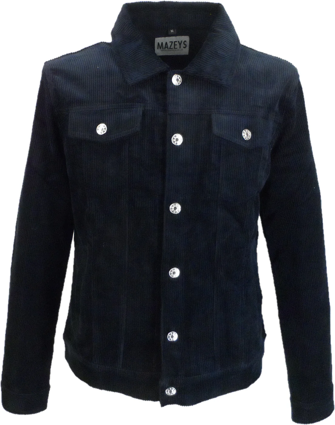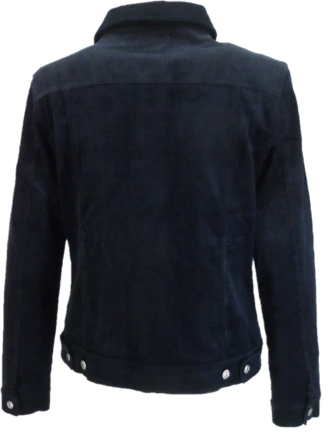 Mens 60s Retro Vintage Navy Cord Western Trucker Jacket