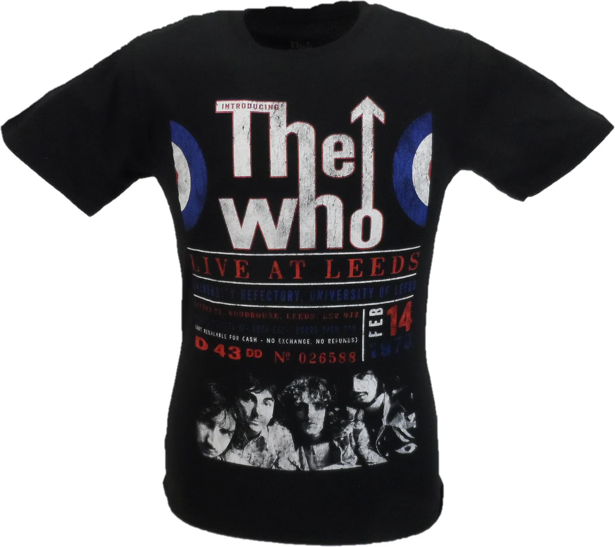 An official licensed unisex soft-style cotton Tee featuring The Who ‘Live in Leeds‘ design motif.