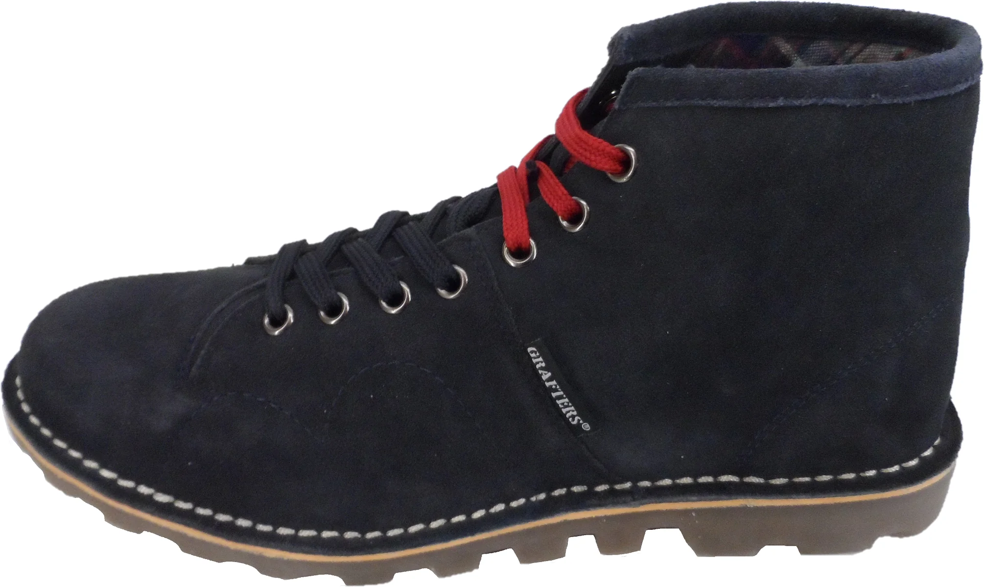 Mens Classic Retro Real Suede Navy Leather Monkey Boots …