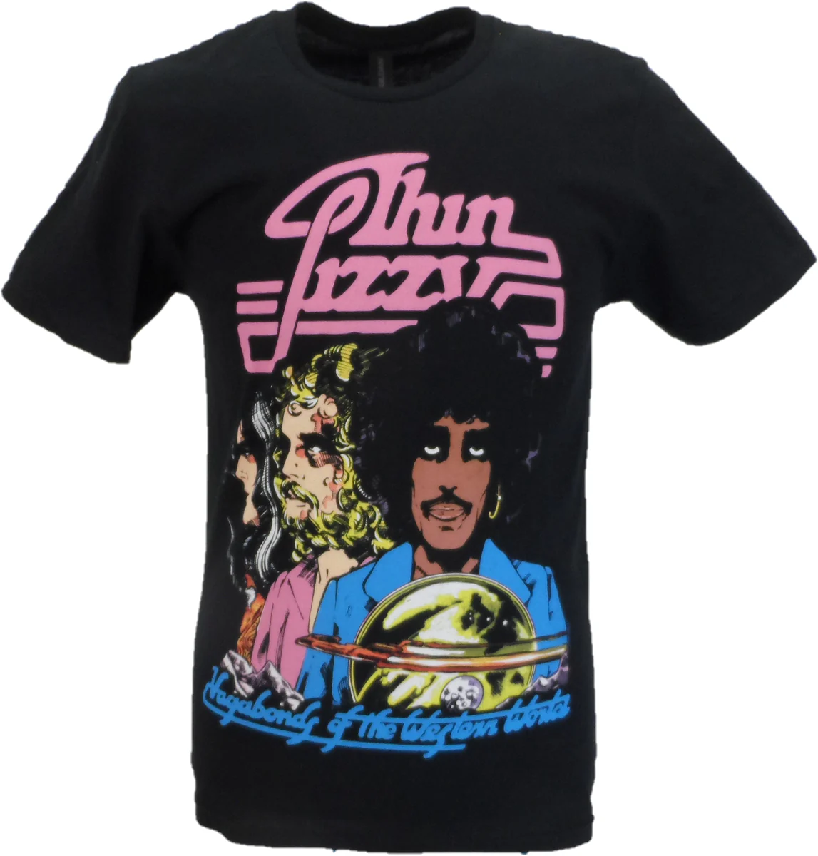 100% Cotton Mens Retro T-Shirt Classic T-Shirt featuring the some of cover art of Thin Lizzys 3rd studio with Back Print of The Album Tracks
