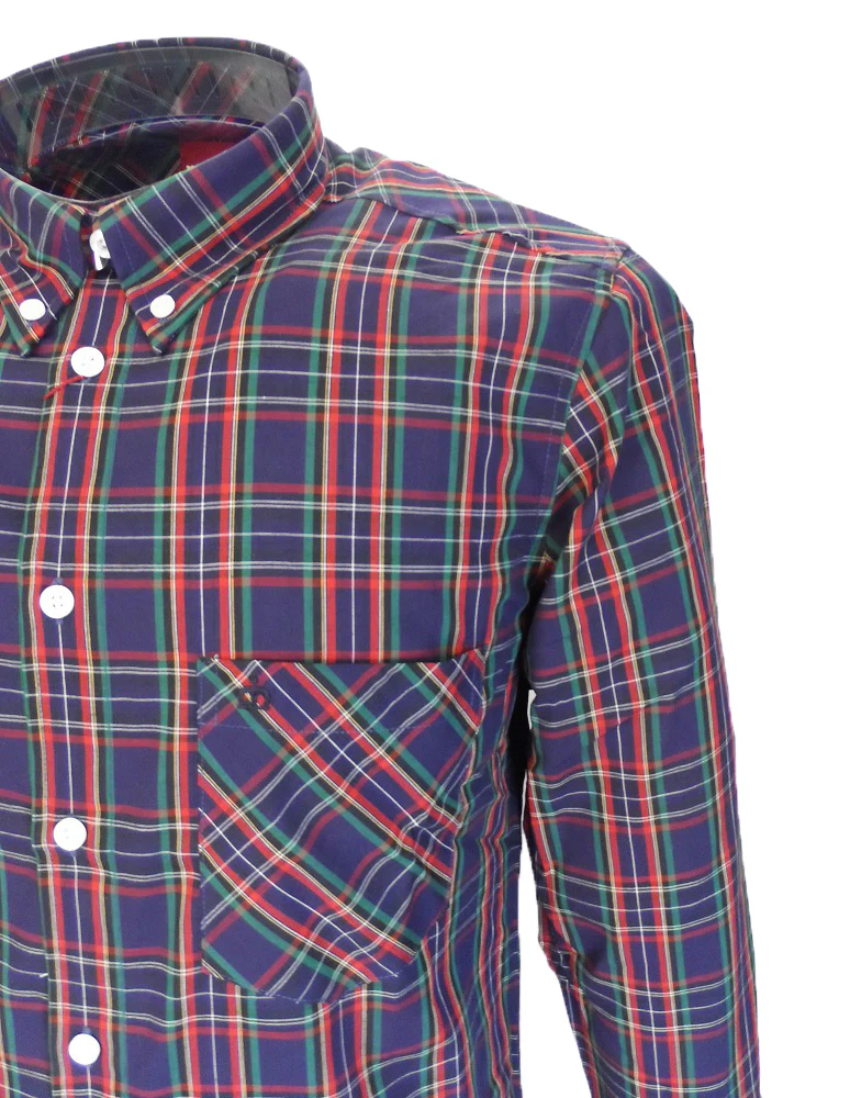 A classic vintage styled vintage button down shirt, mod-fit and with full back pleat, with front breast pocket.