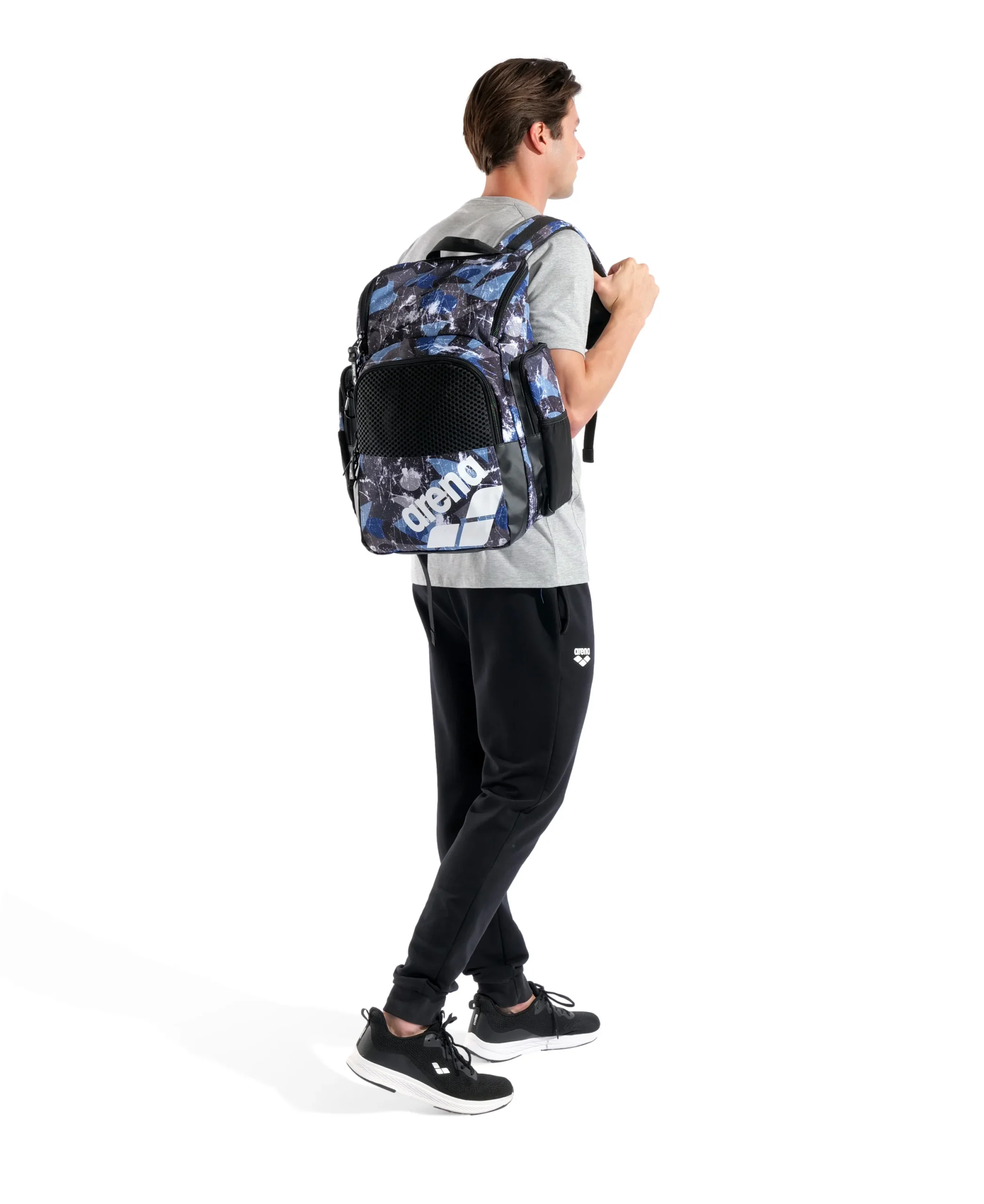 Una compañera extremadamente moderna y versátil para la piscina, el gimnasio o el tiempo libre. La práctica mochila arena One Go Allover 35L con diseño de carga superior ayuda a guardar y acceder fácilmente a todas tus pertenencias. El espacioso compartimento principal y los tres bolsillos delanteros exteriores con cremallera permiten guardar por separado las cosas secas y húmedas. Con bolsillo inteligente para el portátil y dos bolsillos exteriores para botellas. Aquabreathe, el nuevo sistema de gestión de la humedad de arena, combina tejidos transpirables y repelentes al agua para formar un sistema de ventilación avanzado que mantiene el agua fuera y tu equipo seco. El panel trasero transpirable garantiza un transporte sin sudar. Con práctica correa para fijarla fácilmente a una maleta. El fondo repelente al agua y tejido principal repelente al agua ofrecen protección de la humedad y la suciedad. Dimensiones: 46 x 38 x 23 cm, 35L