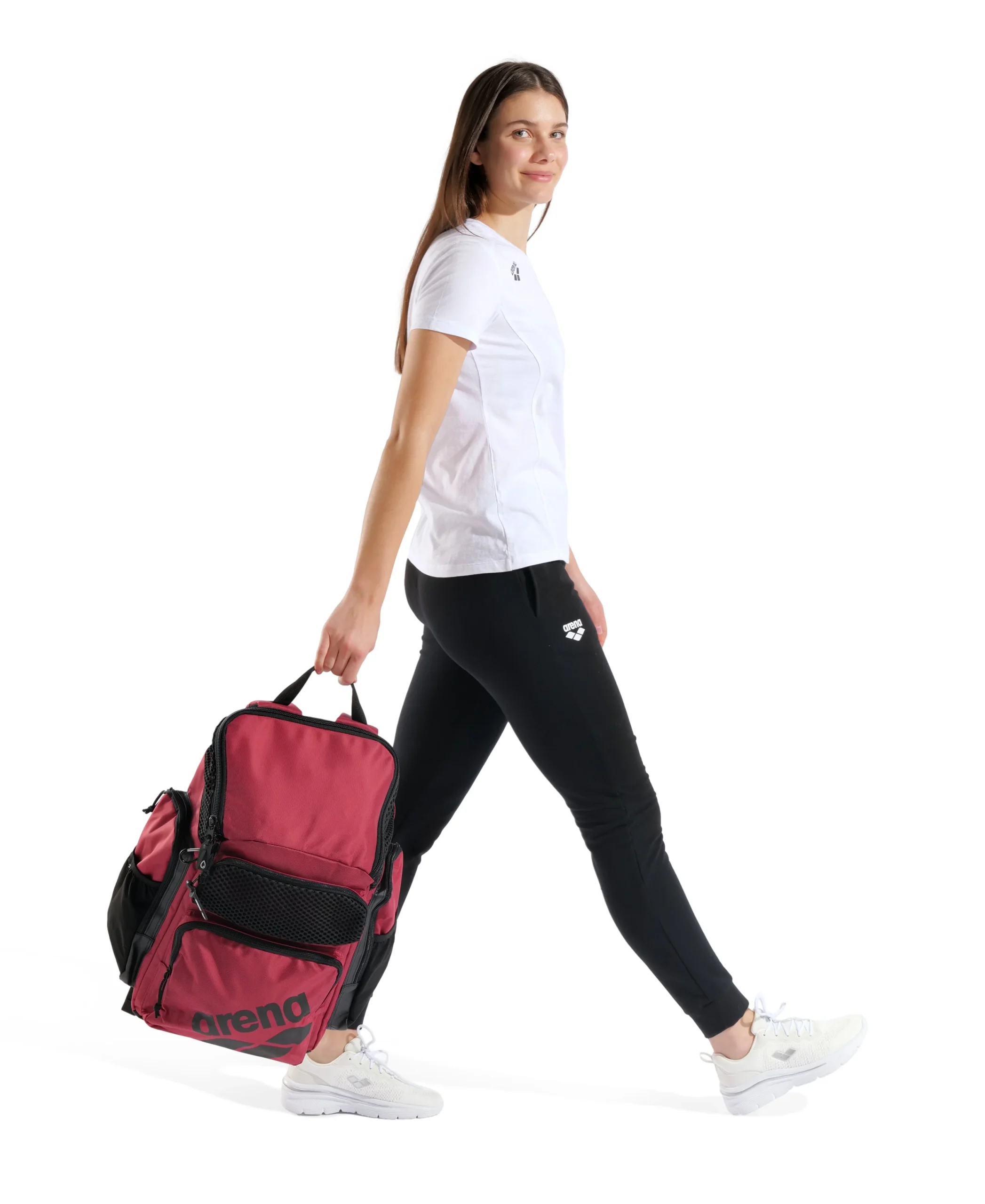 Organiza todas las cosas que necesitas para tu entrenamiento. La gran mochila arena One Go 45L con diseño de carga superior ayuda a guardar y acceder fácilmente a todas tus pertenencias. El espacioso compartimento principal y cuatro bolsillos delanteros exteriores con cremallera ofrecen diferentes opciones de almacenaje. Los insertos herméticos y transpirables están diseñados para mantener separadas las cosas húmedas y secas. Con bolsillo inteligente para el portátil y dos bolsillos exteriores para botellas. Aquabreathe, el nuevo sistema de gestión de la humedad de arena, combina tejidos transpirables y repelentes al agua para formar un sistema de ventilación avanzado que mantiene el agua fuera y tu equipo seco. El panel trasero transpirable garantiza un transporte sin sudar. Con práctica correa para fijarla fácilmente a una maleta. La mochila se cuelga fácilmente con el mosquetón incluido. El fondo repelente al agua y tejido principal repelente al agua ofrecen protección de la humedad y la suciedad. Dimensiones: 50 x 40 x 25 cm, 45L