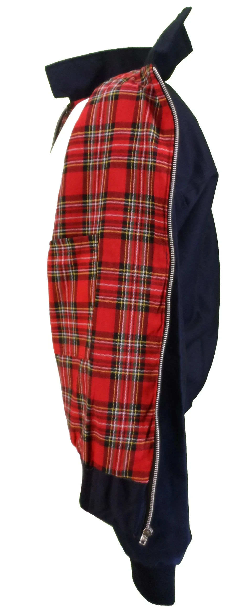 Mazey’s Men’s Classic Navy Harrington Jacket Metal Zipped with tartan lining and inner pocket two side pockets with button-up flaps collared with the option for buttoning up with two buttons.