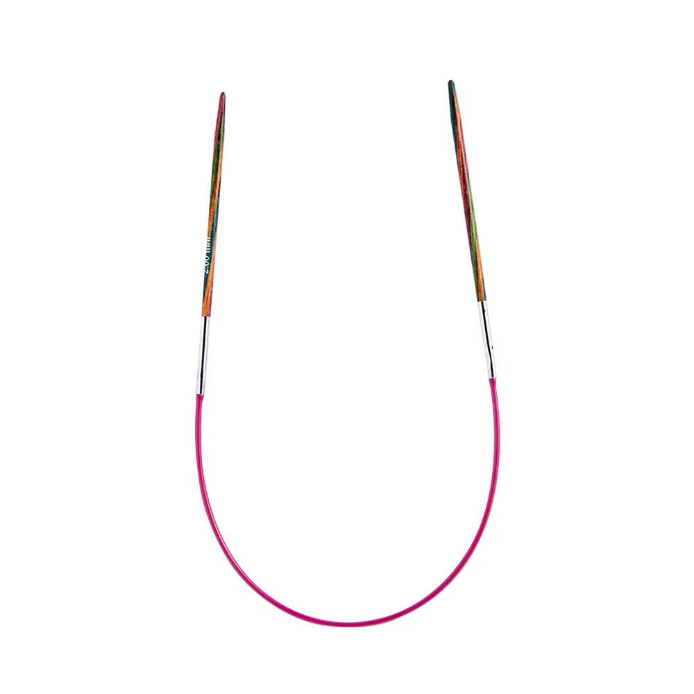 Los palillos circulares fijos Symfonie de Knit Pro son perfectos para pequeños tejidos: puños, ropa para bebé, accesorios para muñecas y todo lo que te puedas imaginar. Muy atractivos por su combinación de colores, con cables flexibles y resistentes, y de puntas suaves que aseguran que las puntadas se deslicen fácilmente sin engancharse.