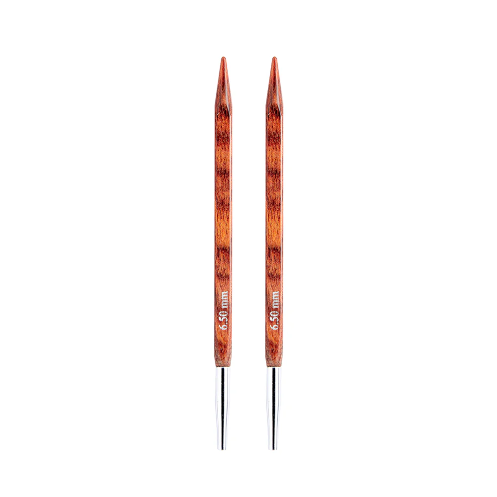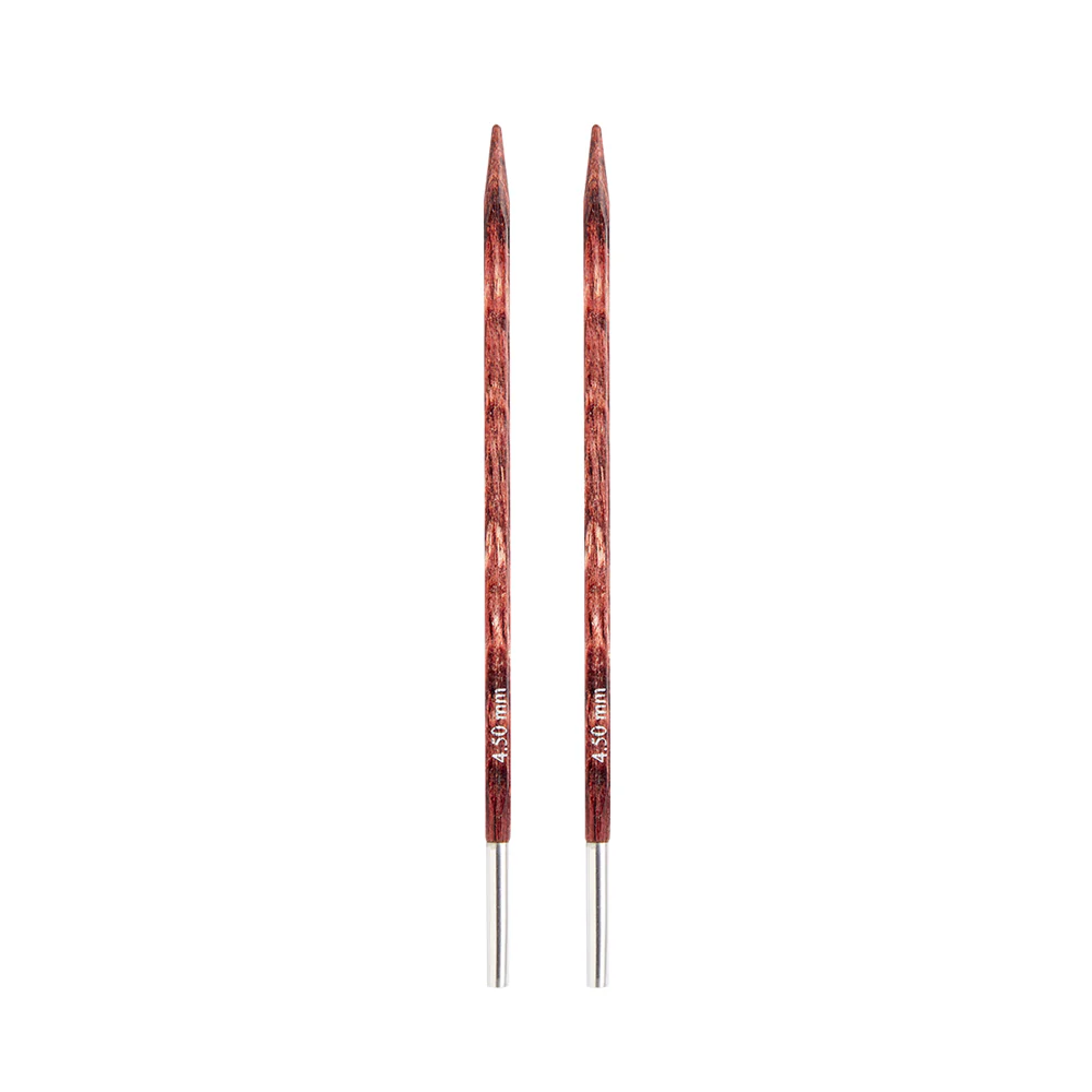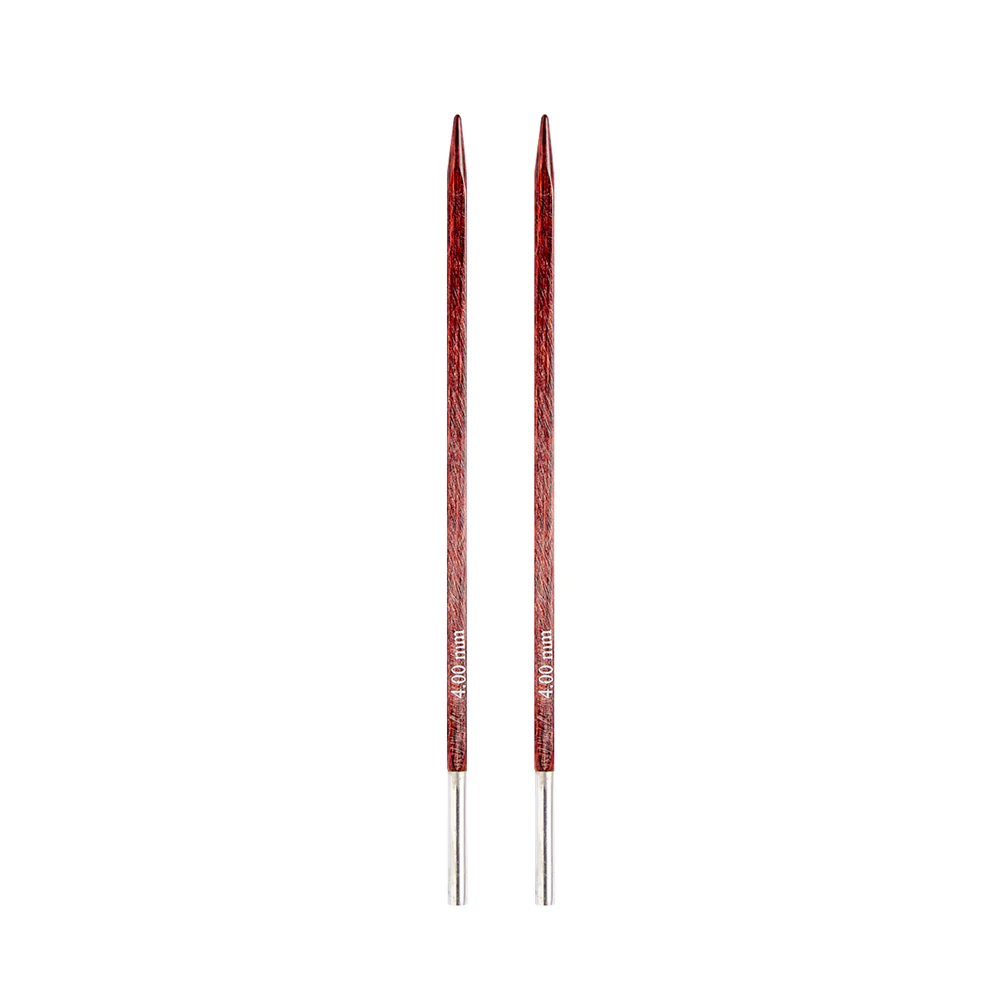 Disponible en formato de 1 par de palillos intercambiables en las siguientes medidas: 4.00 – 4.50 – 5.00 – 5.50 – 6.00 – 6.50 – 7.00 – 8.00