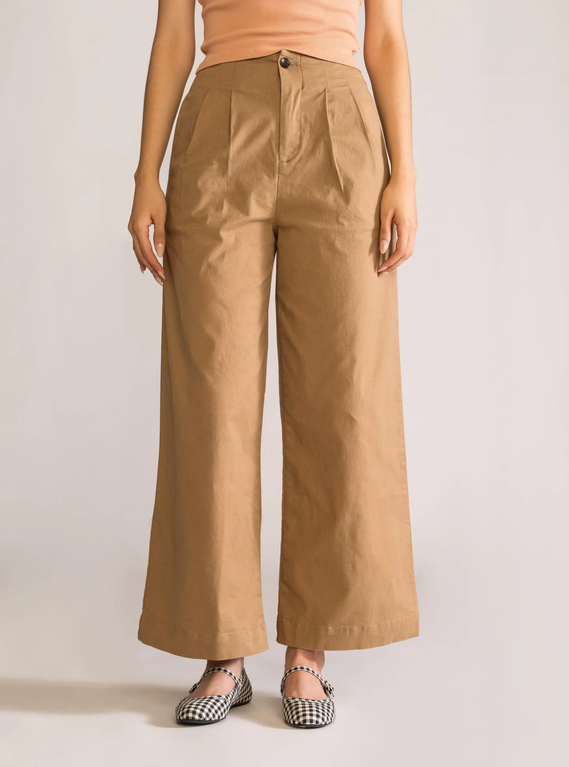 Pantal贸n Paletones Wide Leg, Kaky