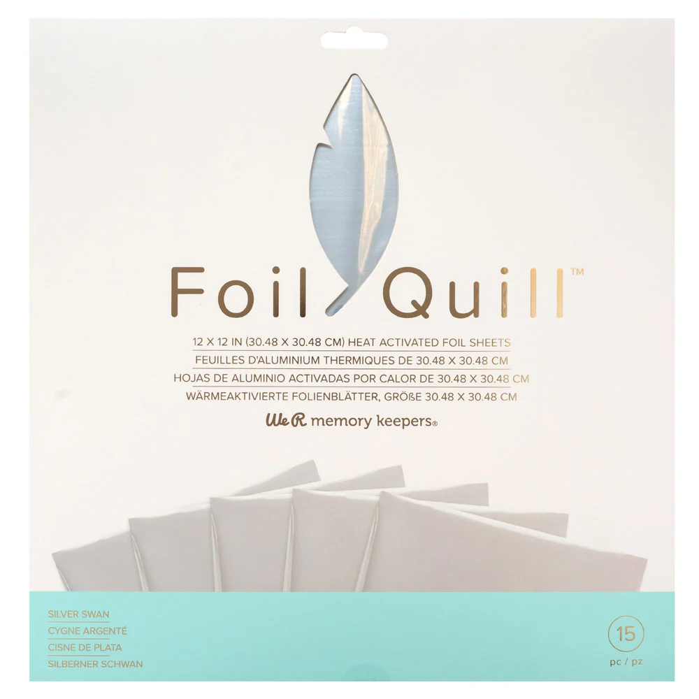 Hojas de aluminio plateadas para personalizar sus proyectos y darles un acabado brillante con el lápiz térmico»,»ambos de We R Memory Keepers. El set contiene 15 unidades.