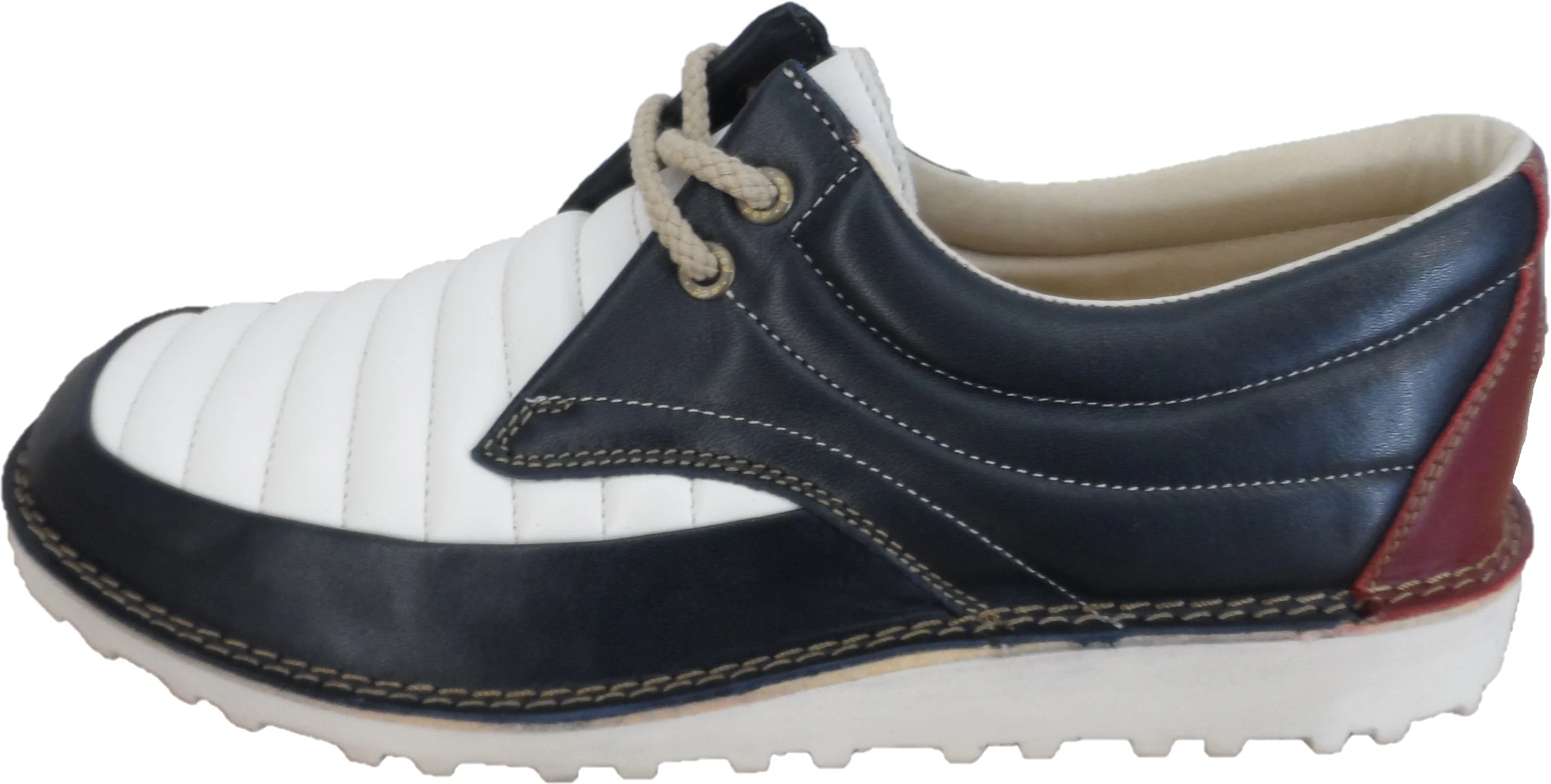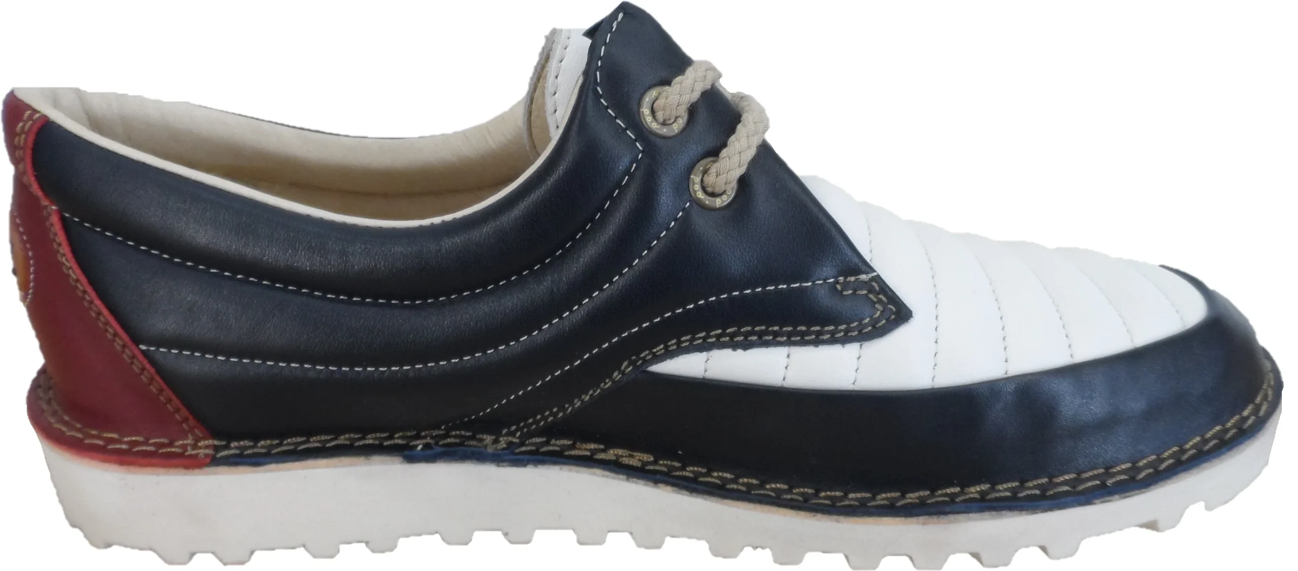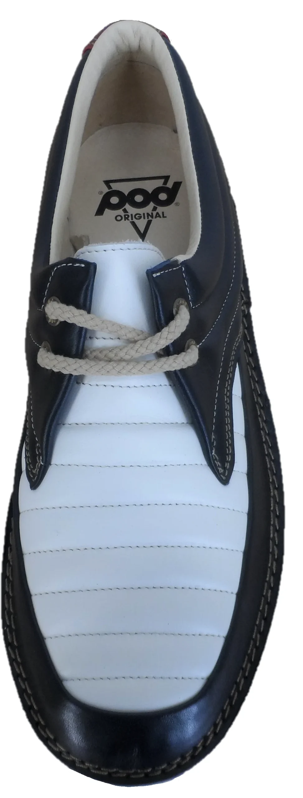 Real leather upper with quilted panel detail. Superb contrast stitch detail throughout, classic Pod Original branded tab detail and branding to heel. Authentic Pod Heritage two-row mudguard stitching, thick EVA sole and round wool lace detail. 2 eyelet fastening. Stunning and stand out men’s Retro Mod footwear with an undoubted Indie edge.