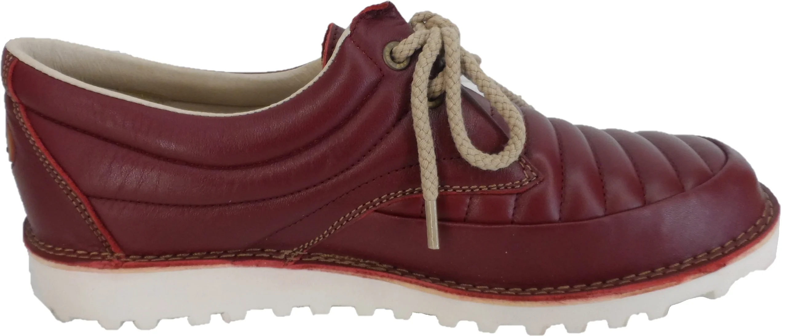 Real leather upper with quilted panel detail. Superb contrast stitch detail throughout, classic Pod Original branded tab detail and branding to heel. Authentic Pod Heritage two-row mudguard stitching, thick EVA sole and round wool lace detail. 2 eyelet fastening. Stunning and stand out men’s Retro Mod footwear with an undoubted Indie edge.