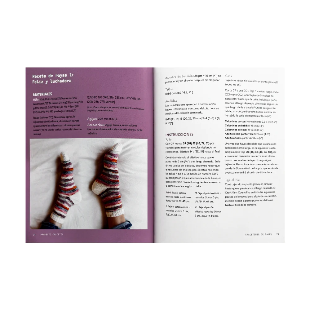 Organizado en 12 niveles de dificultad, es perfecto para avanzar paso a paso, desde tus primeros pares hasta diseños más complejos. Con instrucciones claras, fotos llenas de energía y una estética que celebra el tejido como forma de expresión personal, este libro es puro goce textil.