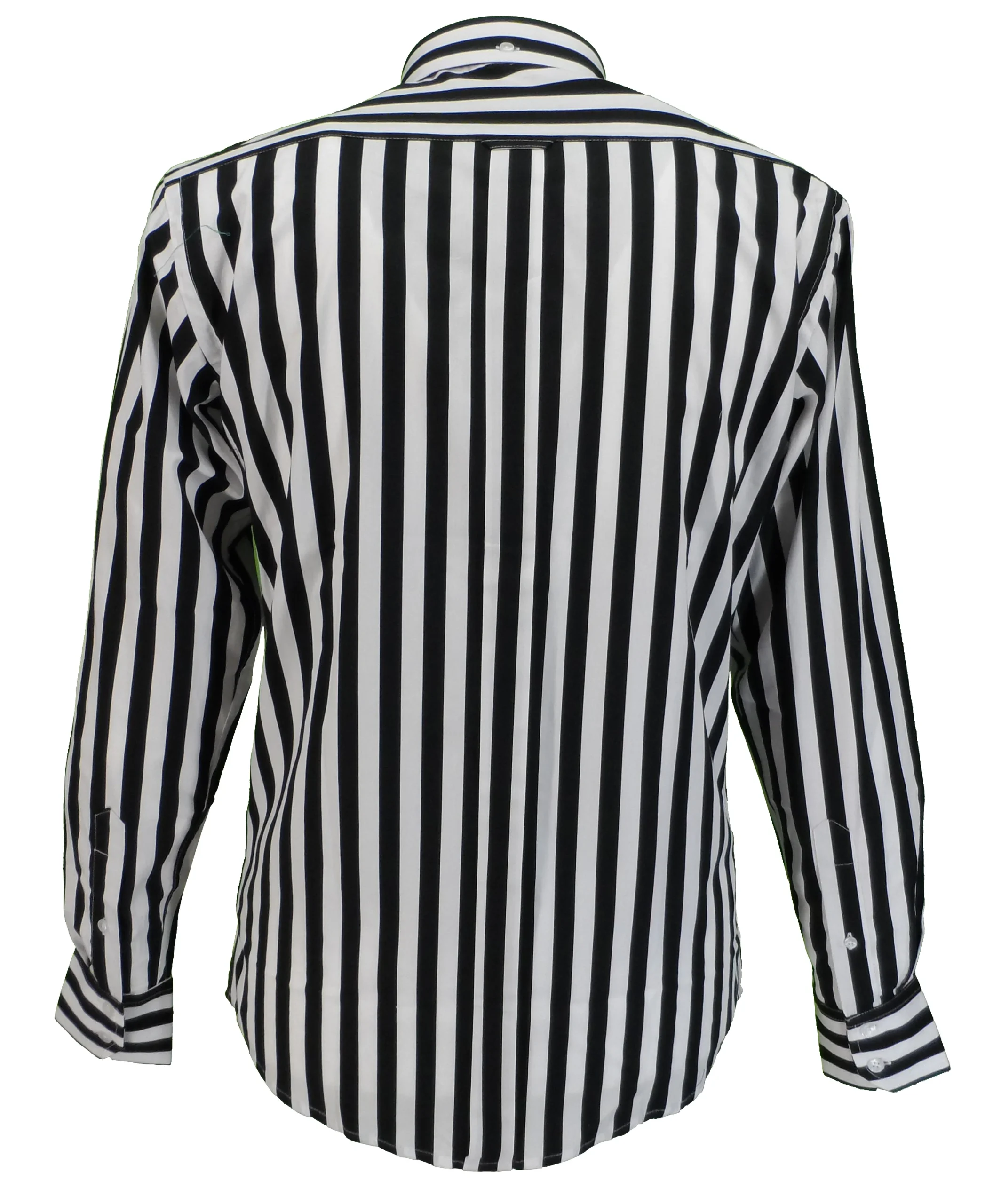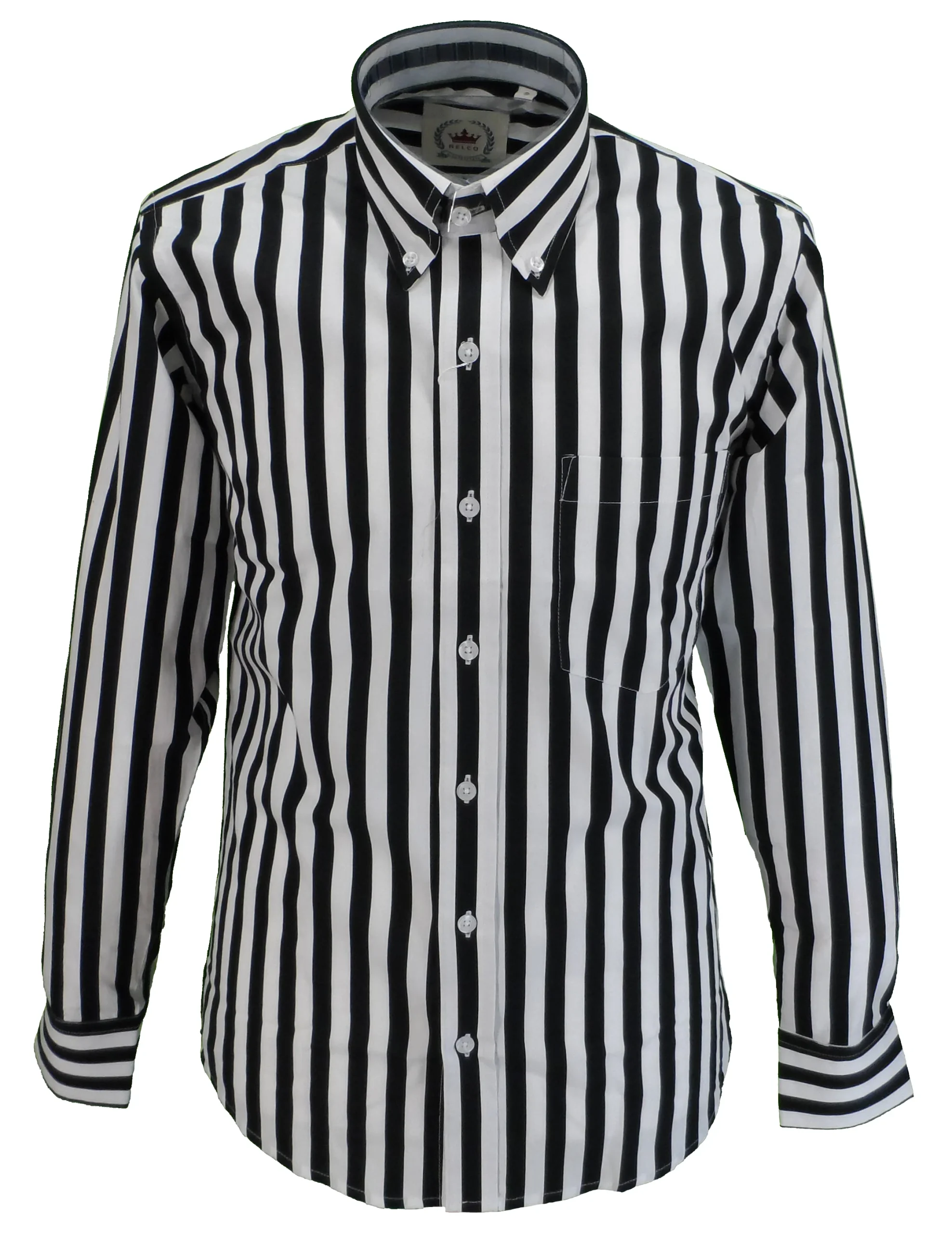 Relco Black & White Stripe Cotton Long Sleeved Retro Mod Button Down Shirts