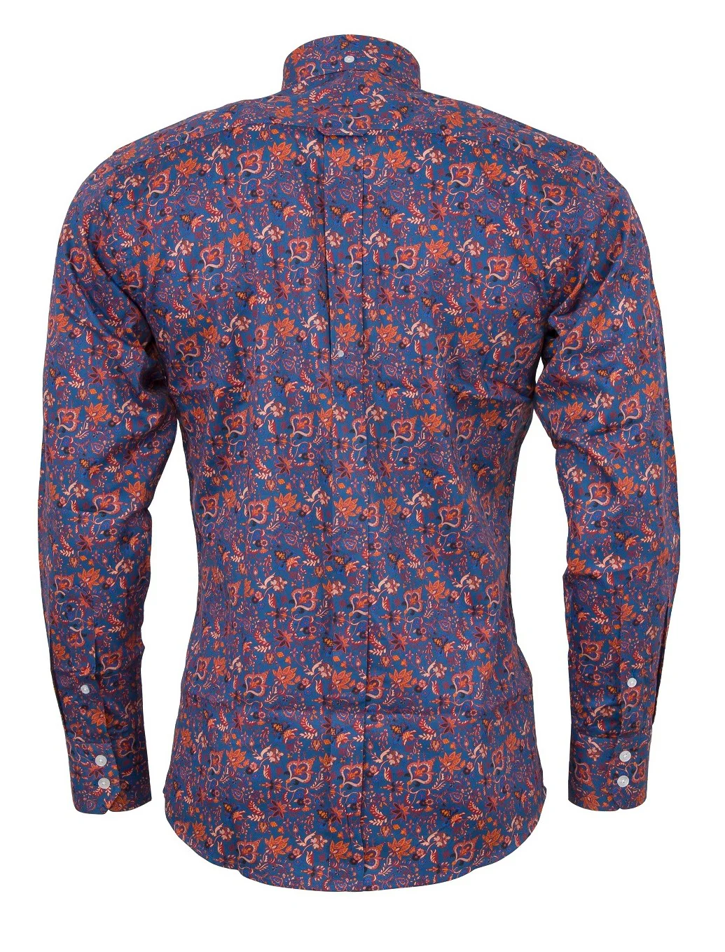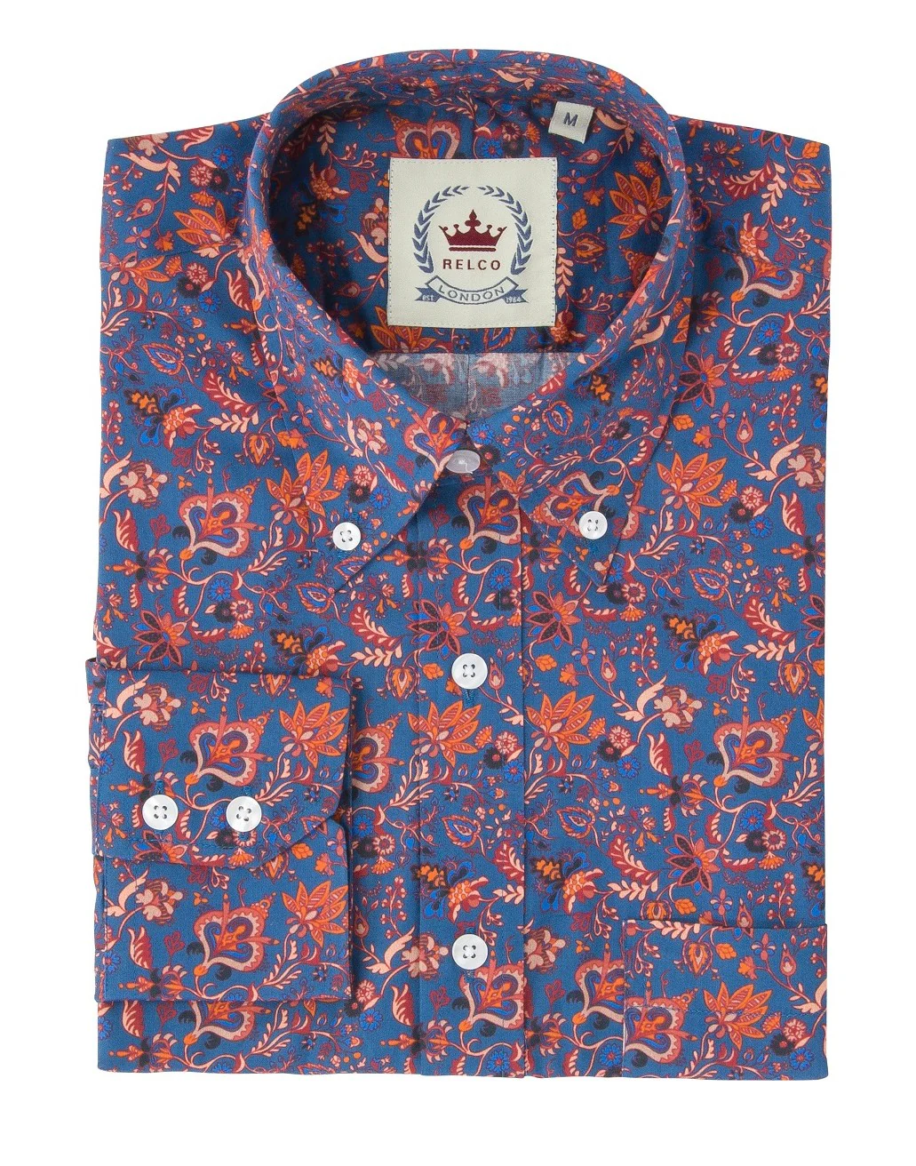 Relco Blue Floral Long Sleeved Retro Mod Button Down Shirt