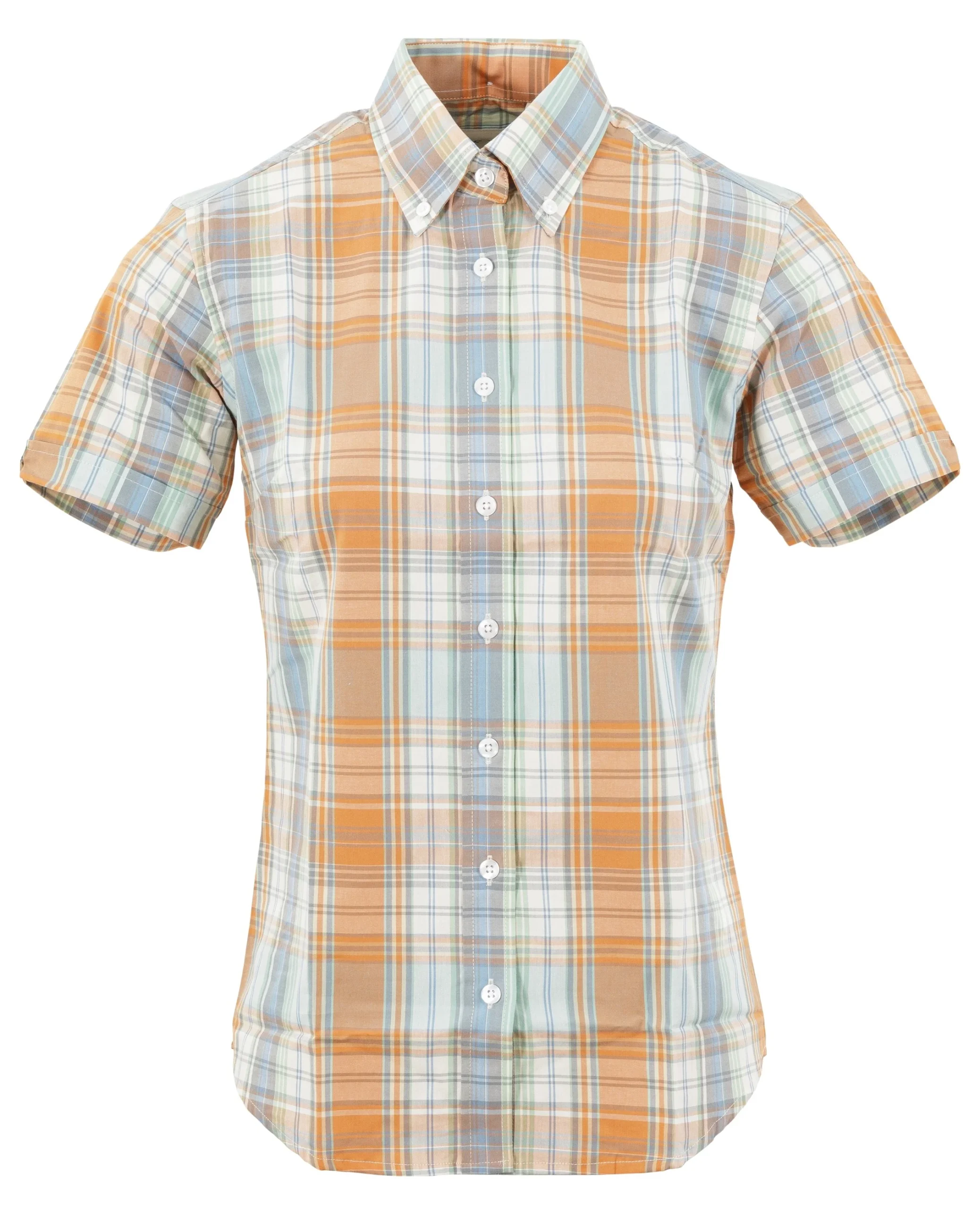 Relco Ladies Retro Orange/Sky Check Button Down Short Sleeved Shirts