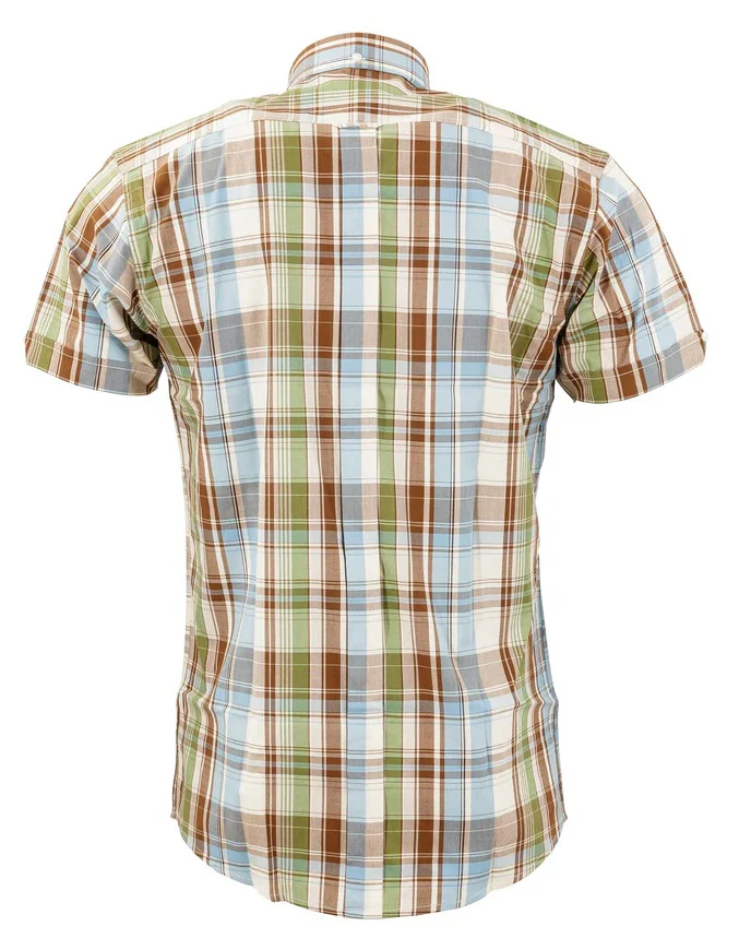 Relco Ladies Retro Sky,Green & Brown Check Button Down Short Sleeved Shirts