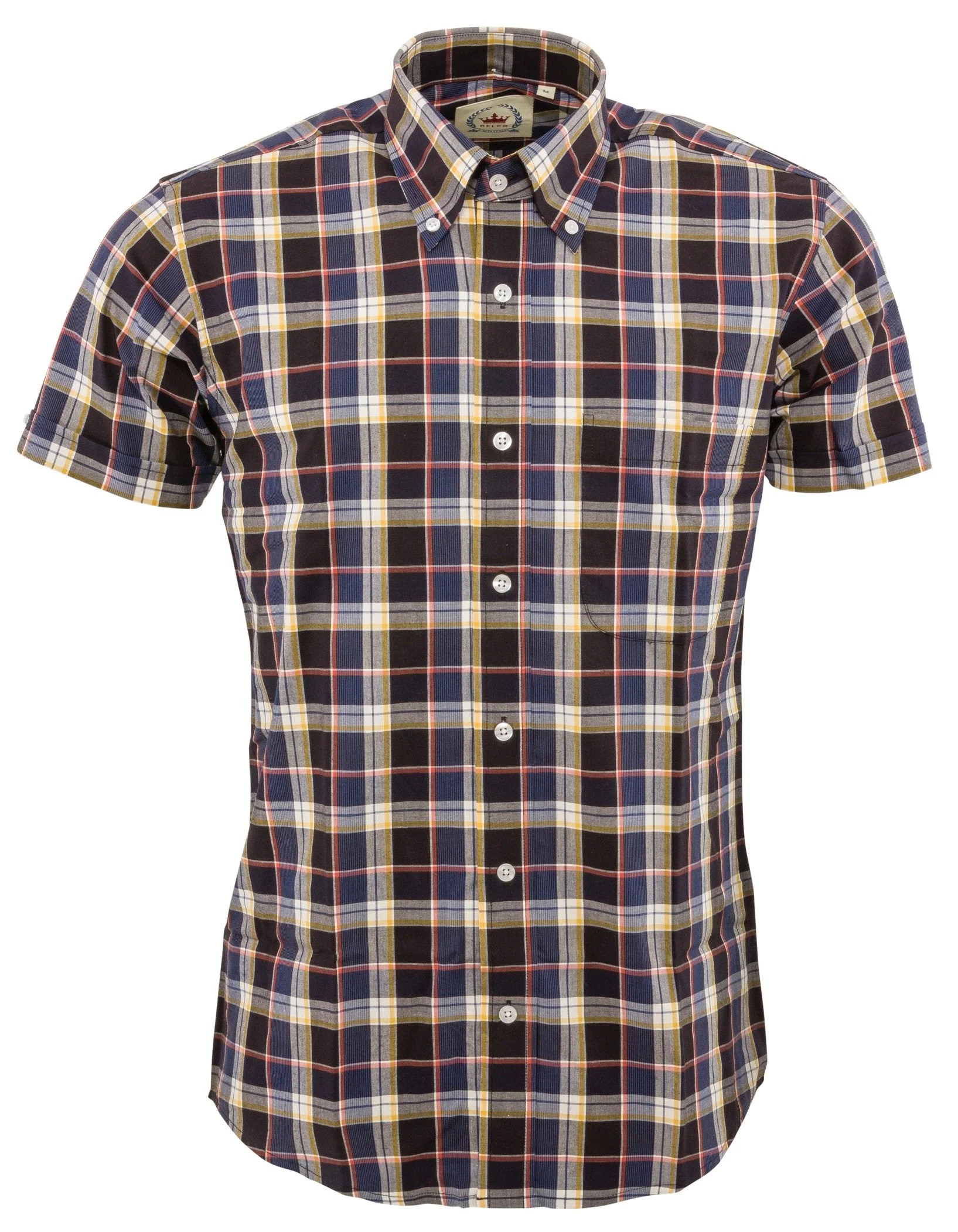 Relco Mens Black & Blue Checked Short Sleeved Button Down Shirts