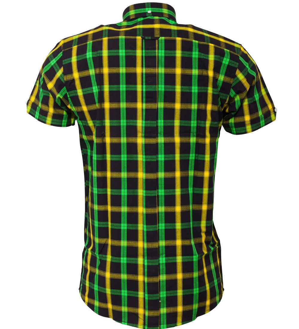Embrace retro style with this Relco button-down shirt, showcasing a vibrant green and yellow check design that captures authentic vintage appeal. The mod-fit cut flatters your frame while the strategically placed back pleat allows unrestricted movement. A practical front breast pocket completes this timeless piece, making it an essential addition to any vintage-inspired wardrobe.