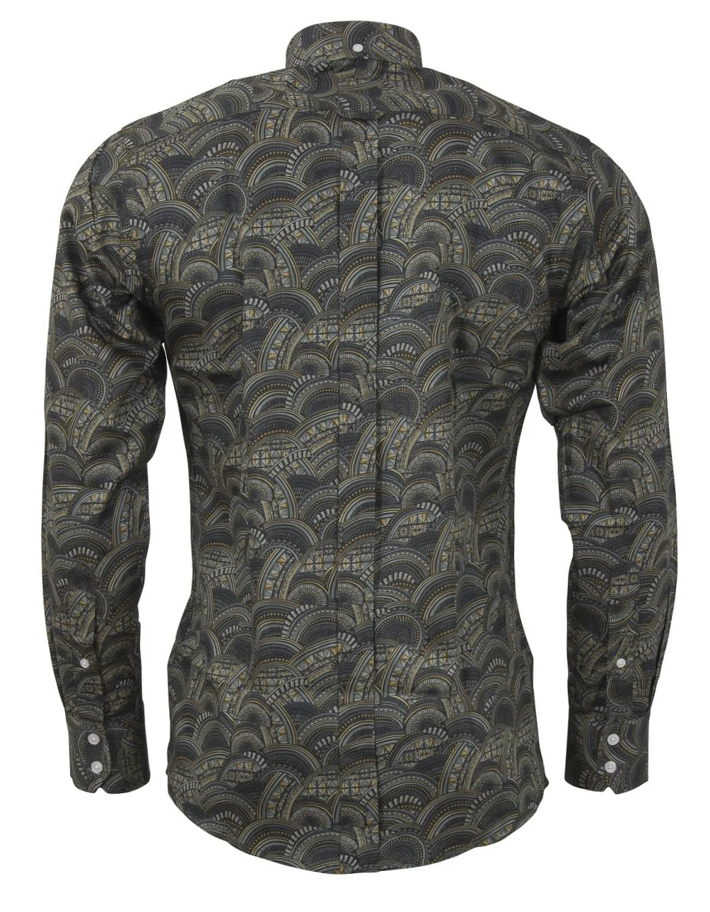 Relco Mens Limited Edition Dark Grey Patterned Button Down Shirt