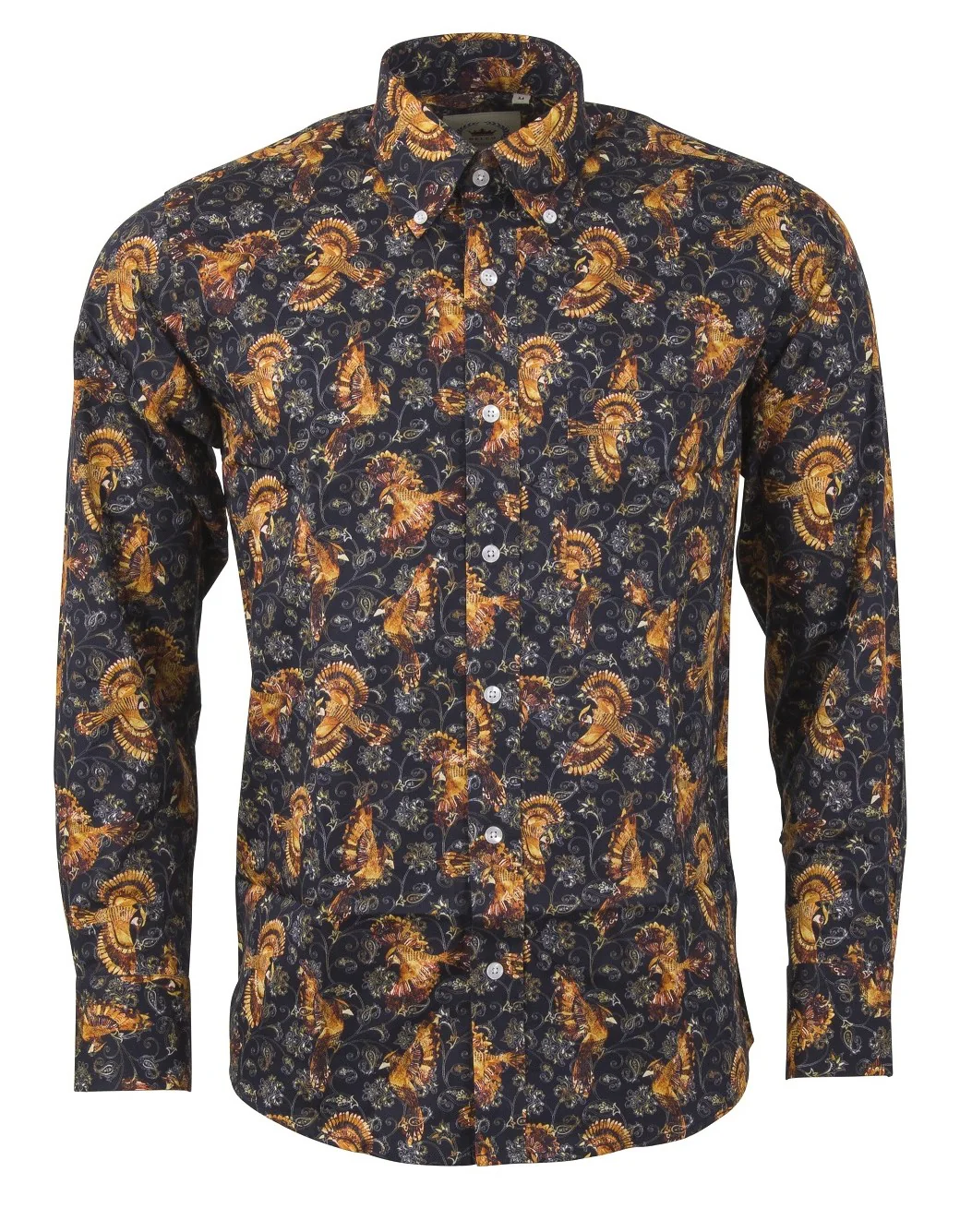A classic vintage styled vintage button-down shirt, mod-fit and with full back pleat, with front breast pocket.