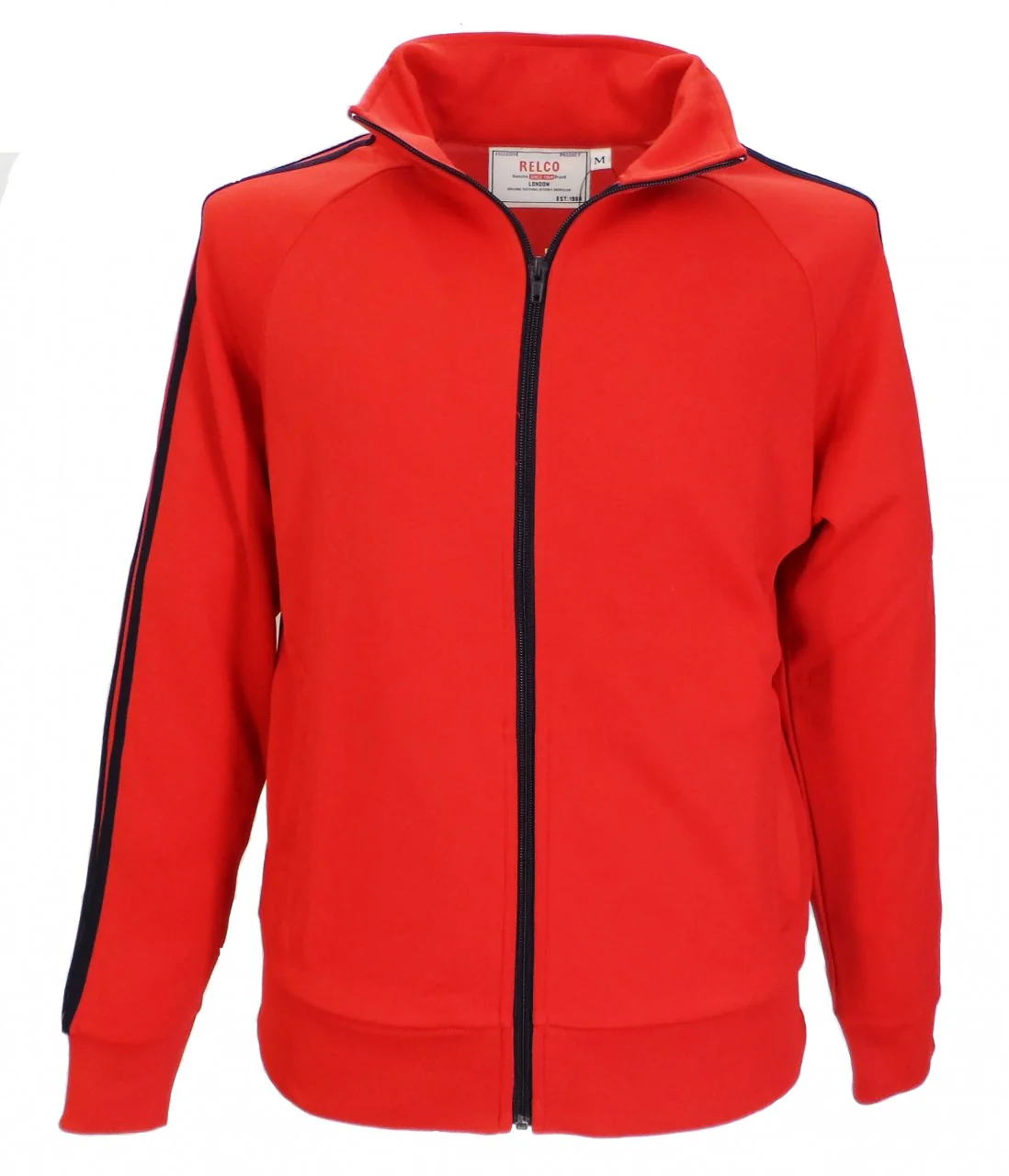 Fantastic mens mod retro track top, classic 2 stripe design with a vintage sixties feel. Crew neck, ribbed hem and cuffs.