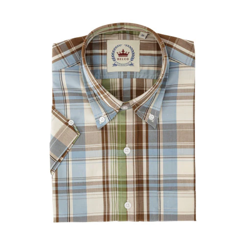 Relco Mens Sky/Green/Brown Multi Check Short Sleeved Button Down Shirts