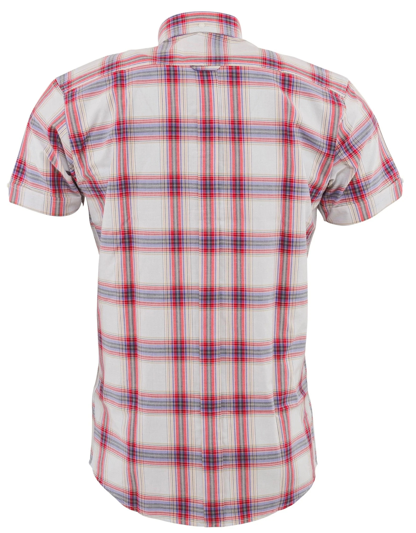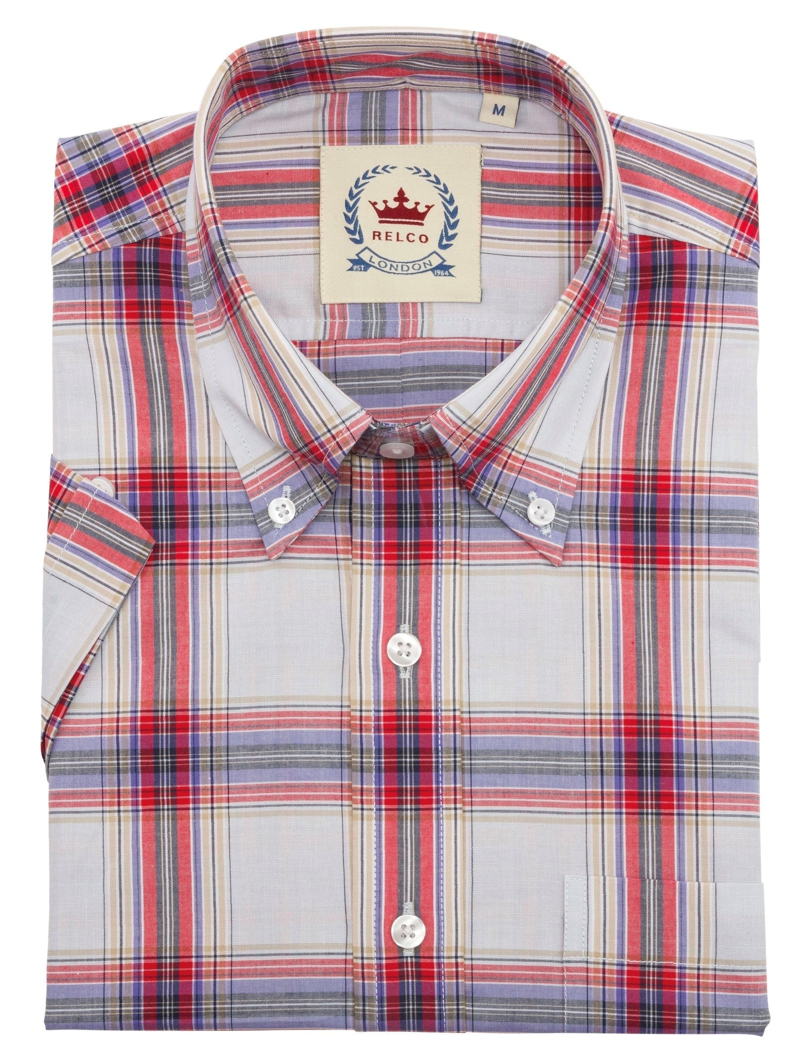 Relco Mens White and Red Checked Short Sleeved Button Down Shirts