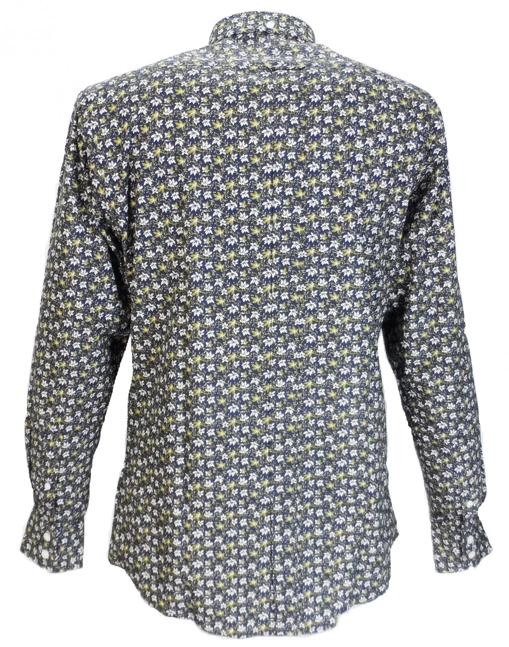 Relco Navy Olive Floral Cotton Long Sleeved Retro Mod Button Down Shirts
