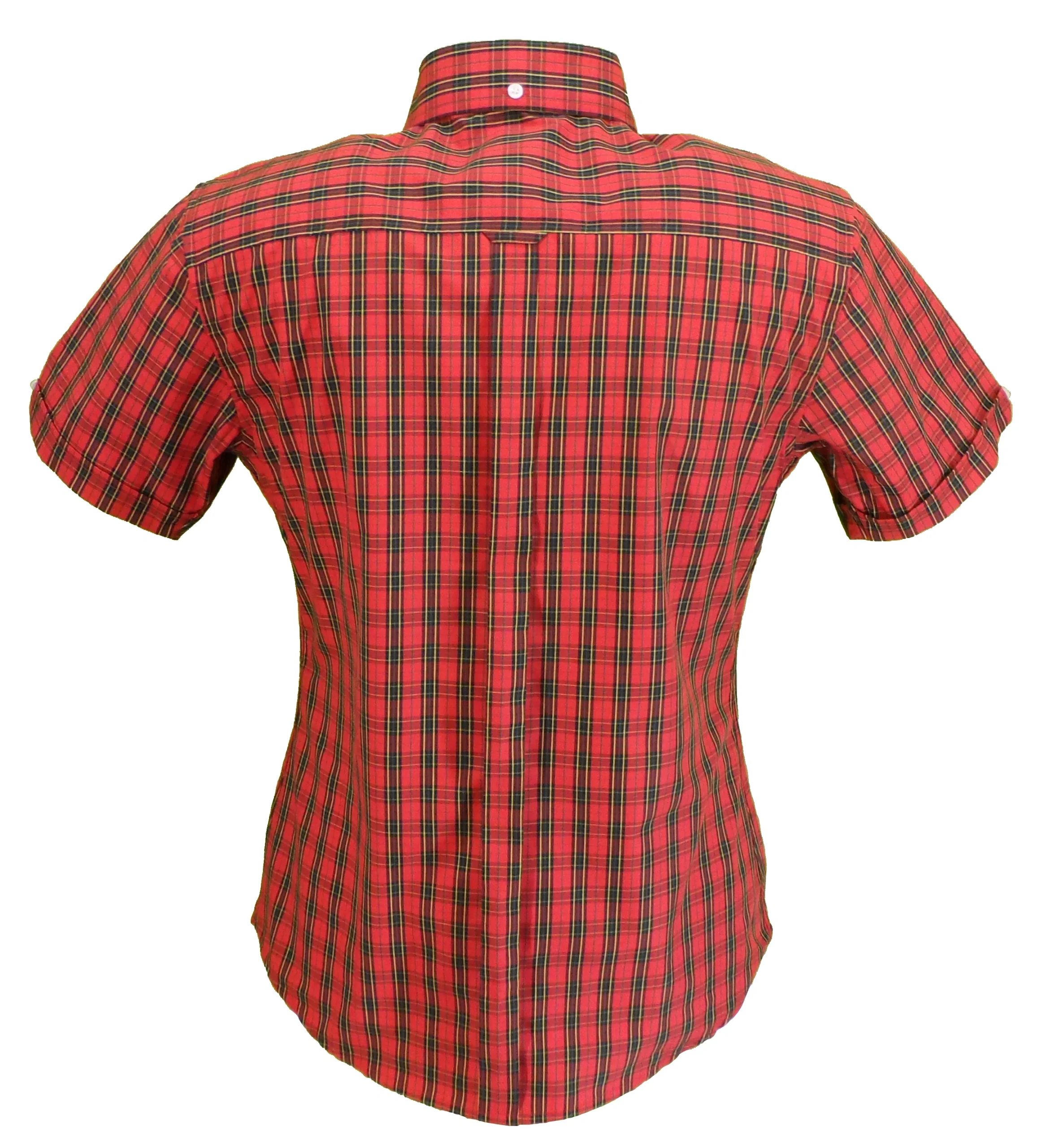 Ladies short sleeved shirts made in cotton with a button down collar and button trim on the sleeves.