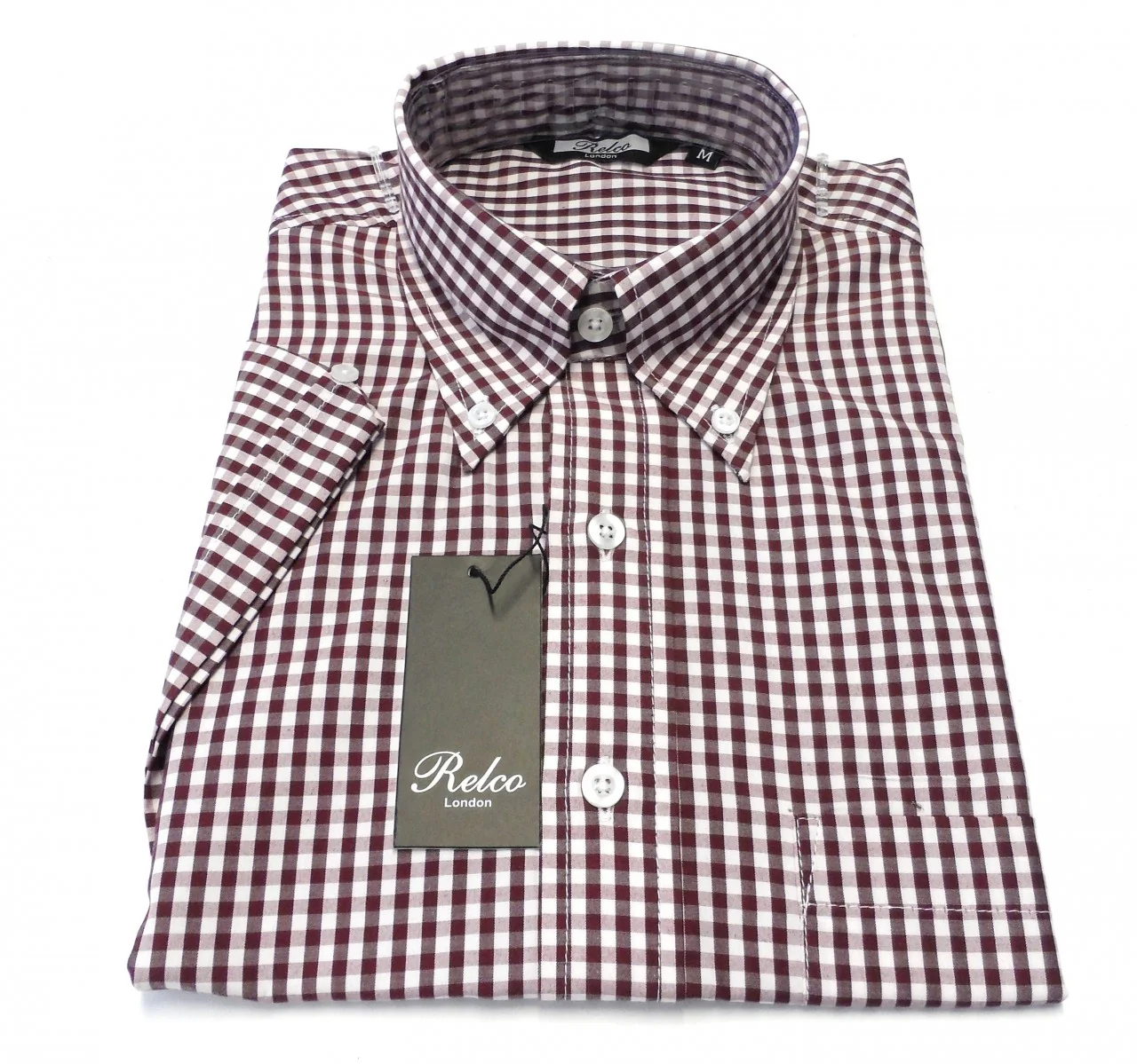 Sé el primero en valorar “Relco Short Sleeved Burgundy Gingham Check Cotton Rich Button Down Shirts”