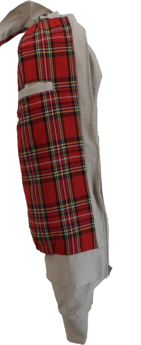 Lightweight cotton red tartan lining right up to the zip, double button collar, YKK metal zip elasticated cuffs, flap style button pocket and wavey seam on back shoulder exactly like the originals.