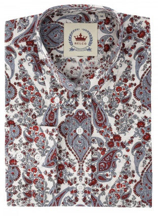 Relco White Red Blue Multi Paisley Long Sleeved Retro Mod Button Down Shirt