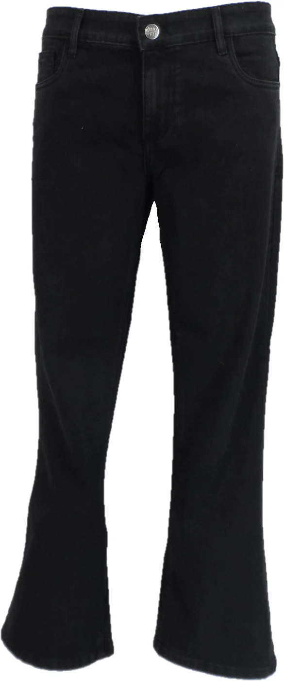 Vintage Inspired Blue Stonewash Slim Stretch Denim Boot Cut Jeans. Classic 60s 70s Cult Retro Rocker Slim Fit Jeans, Fitted to Thigh with a 19″/20″ Wide Hem.