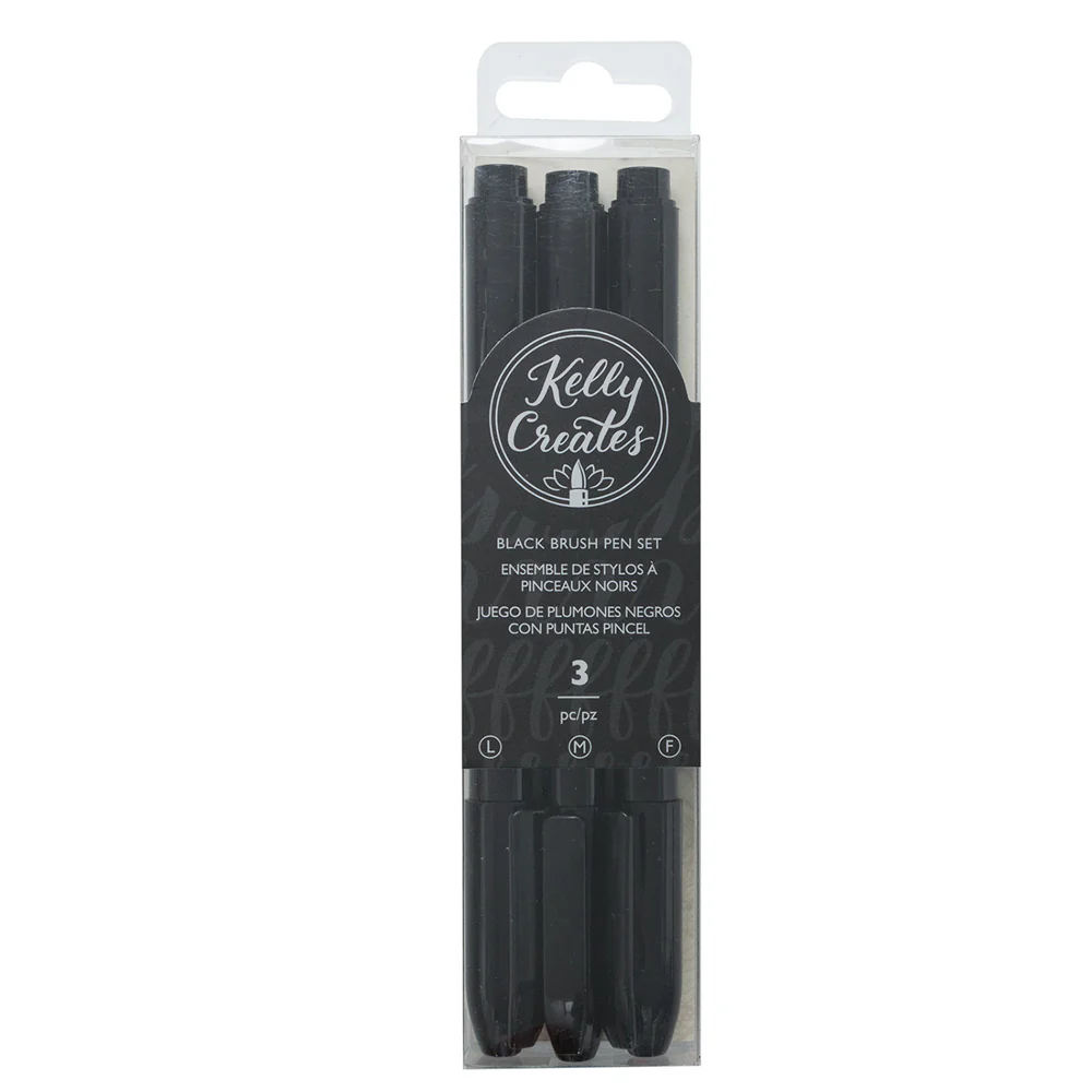 Juego de plumones negros con punta pincel. Contiene 3 lápices de distintos tamaños. Fino, mediano y grande.
