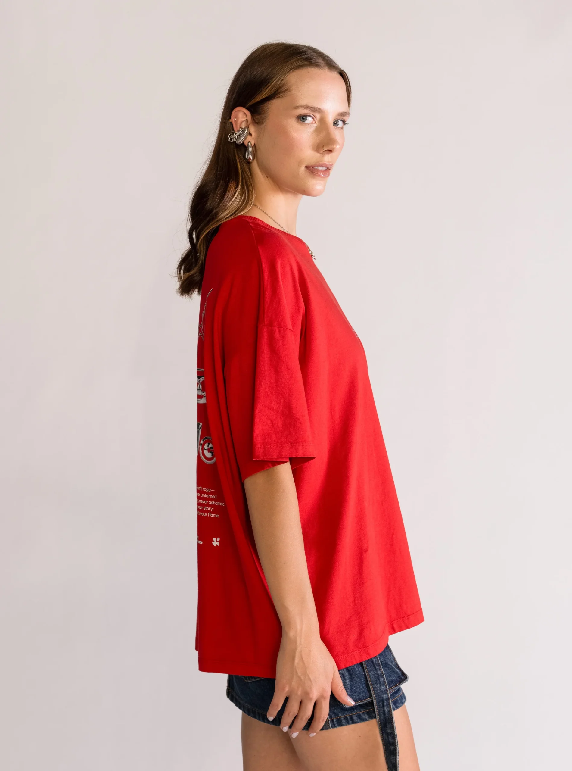 Silver Heart Oversized Playera, Rojo