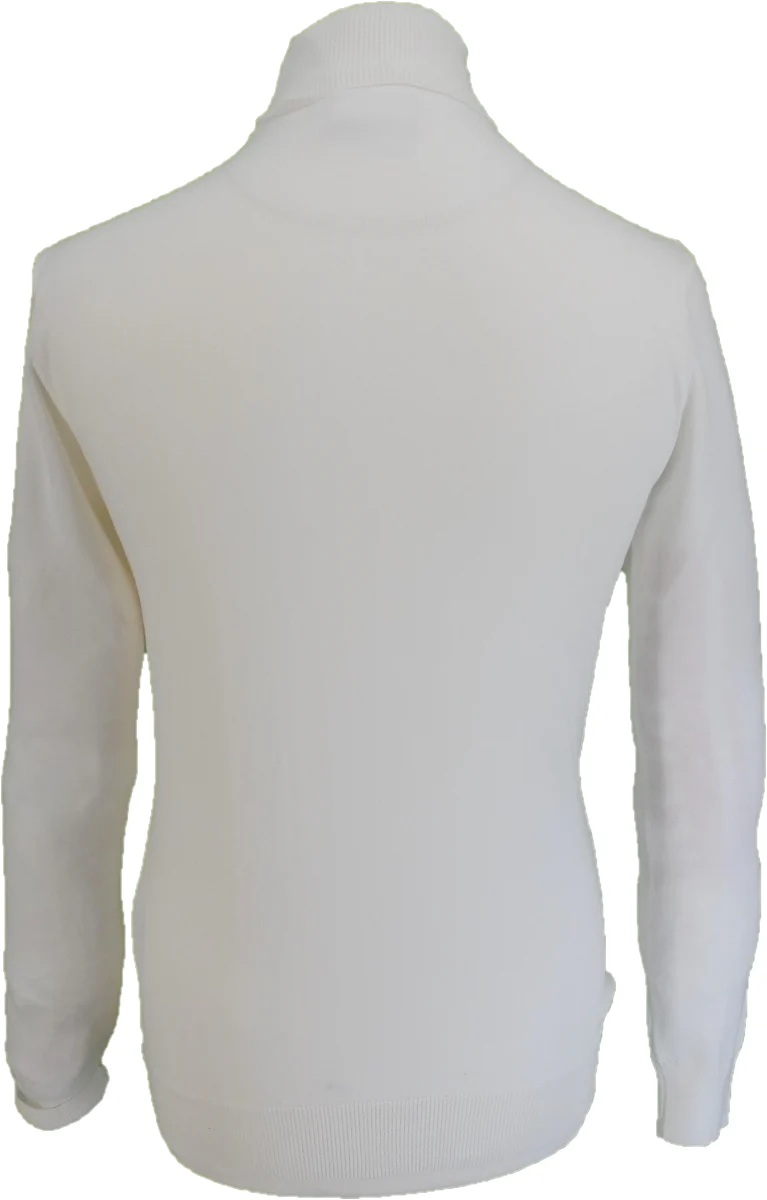 Cotton fine-gauge roll neck, with twin v-stripe detail to chest, with no exterior branding. Crafted from 100% Cotton.