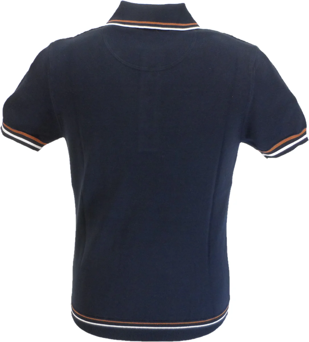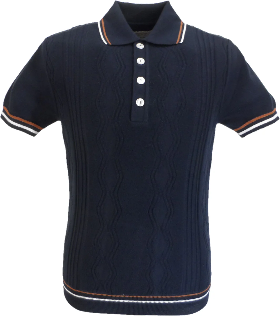 Cotton fine gauge polo, with four large logo IMOP buttons and hidden button/loop, textured Pointelle knit front panel, with twin stripe detail to collar, cuffs and hem, with no exterior branding