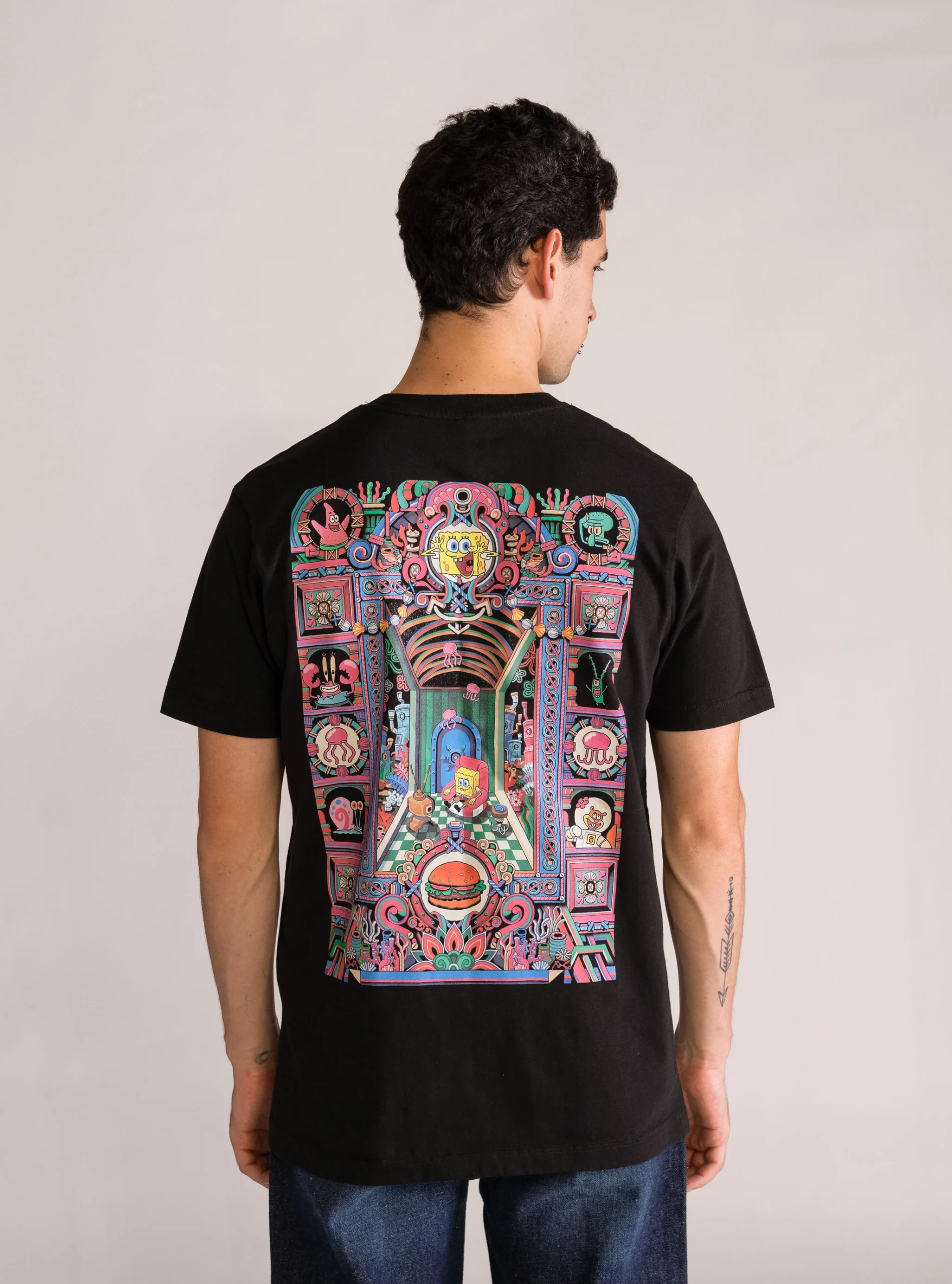 SpongeBob Universe – T-Shirt Negra con Ilustración de Jisu Choi