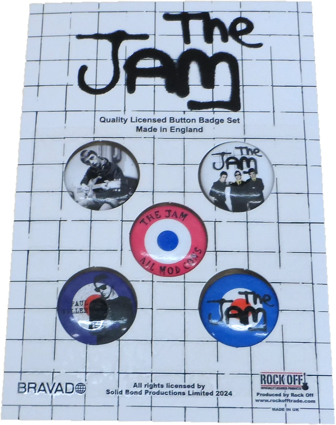 Set of 5 digitally printed plastic button badges in a poly bag with a hang tag. The badges are made from plastic & are fitted with a traditional metal safety pin fastening.