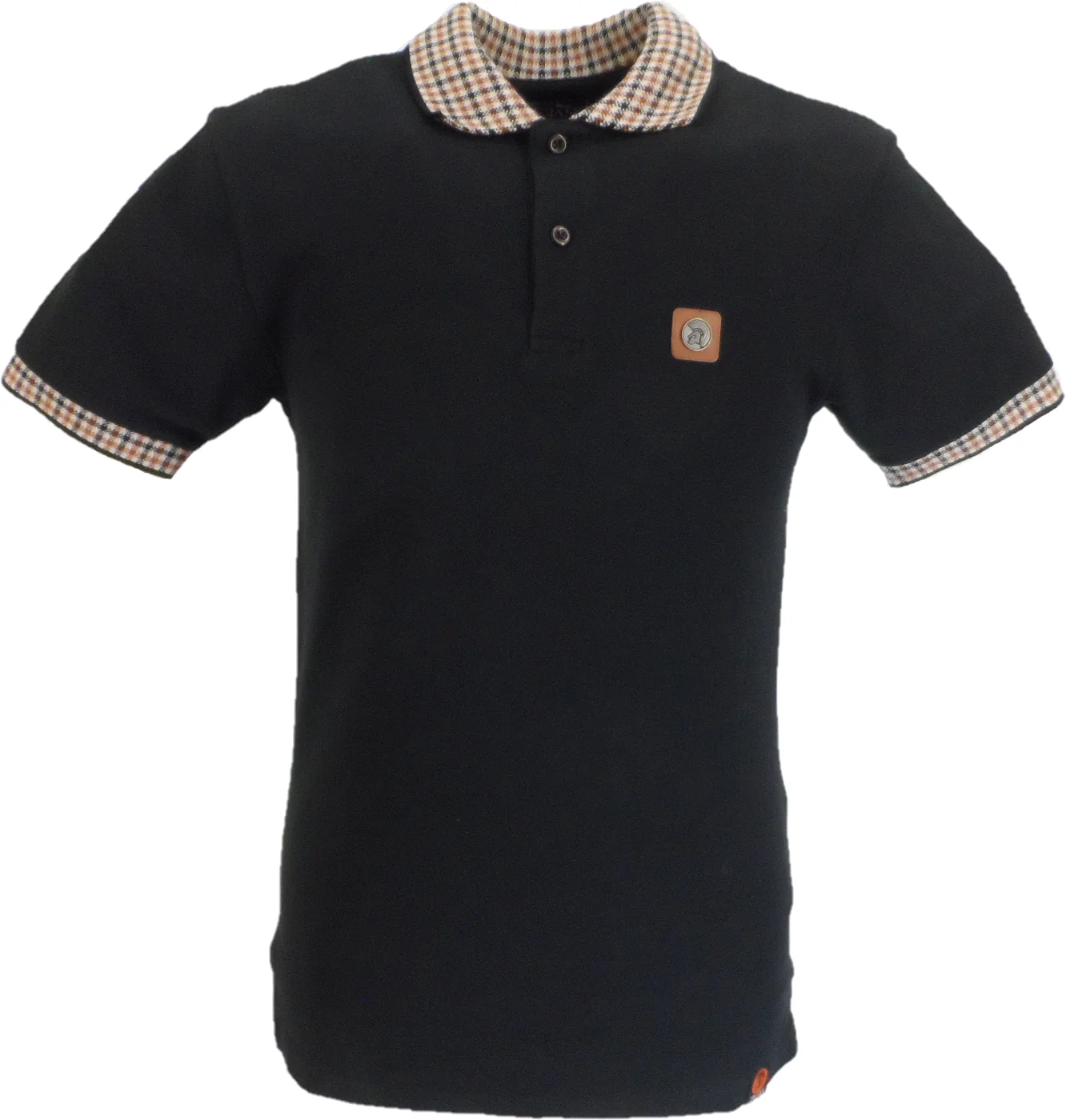 Trojan Mens Black Gingham Check Trim Pique Polo Shirt
