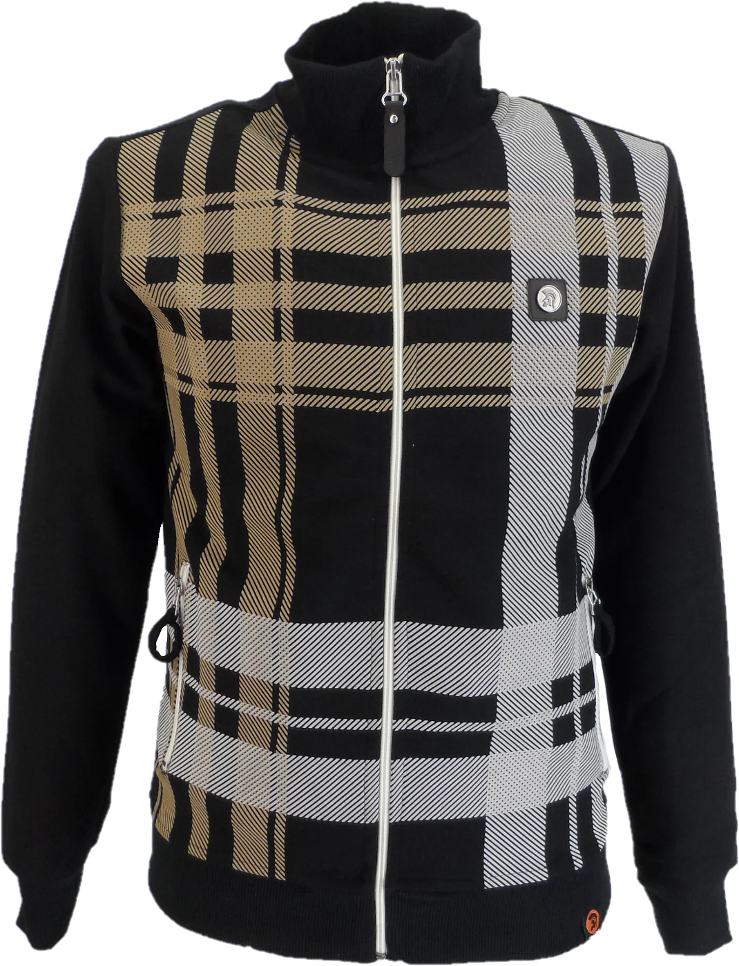 Trojan Mens Black Oversize Check Retro Track Tops