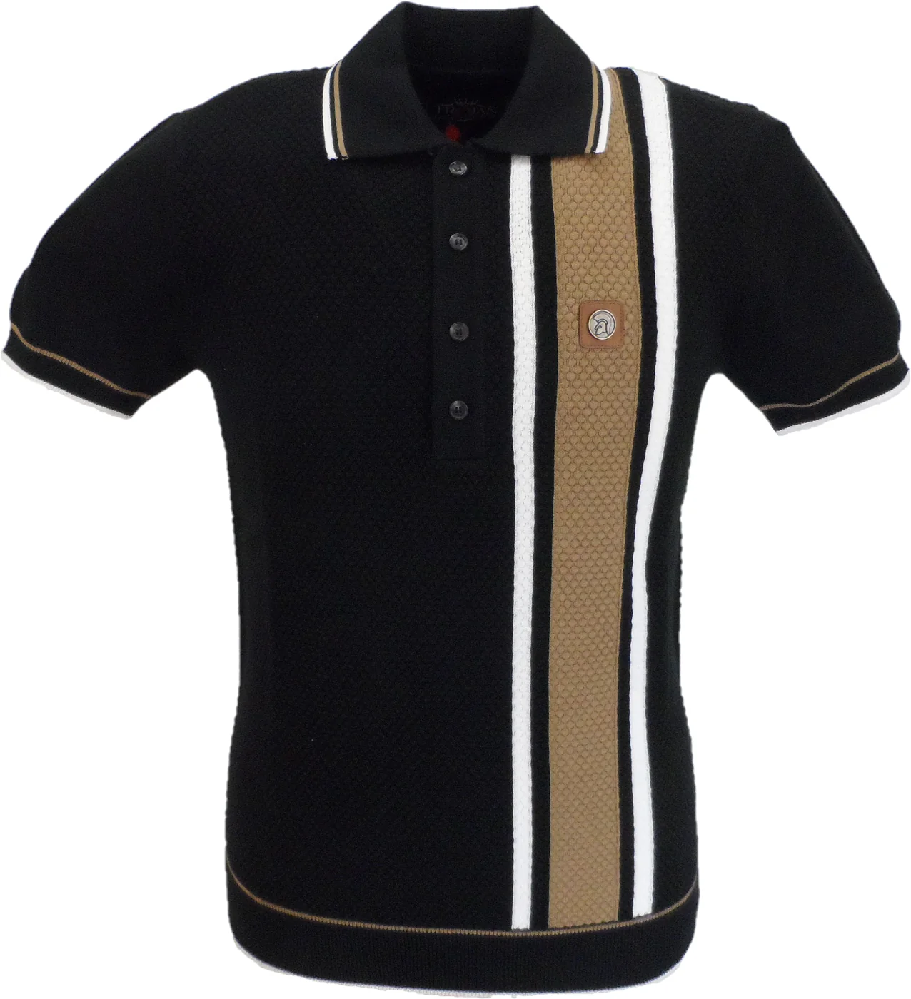 Trojan Mens Black Textured Stripe Knitted Polo Shirt