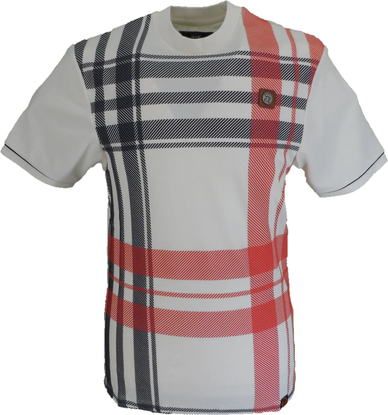 Cotton pique tee, with oversize house check, raised print front panel, with piping on cuffs, Trojan metal badge on the chest, and woven Trojan label at hem. Crafted from 100% Cotton.
