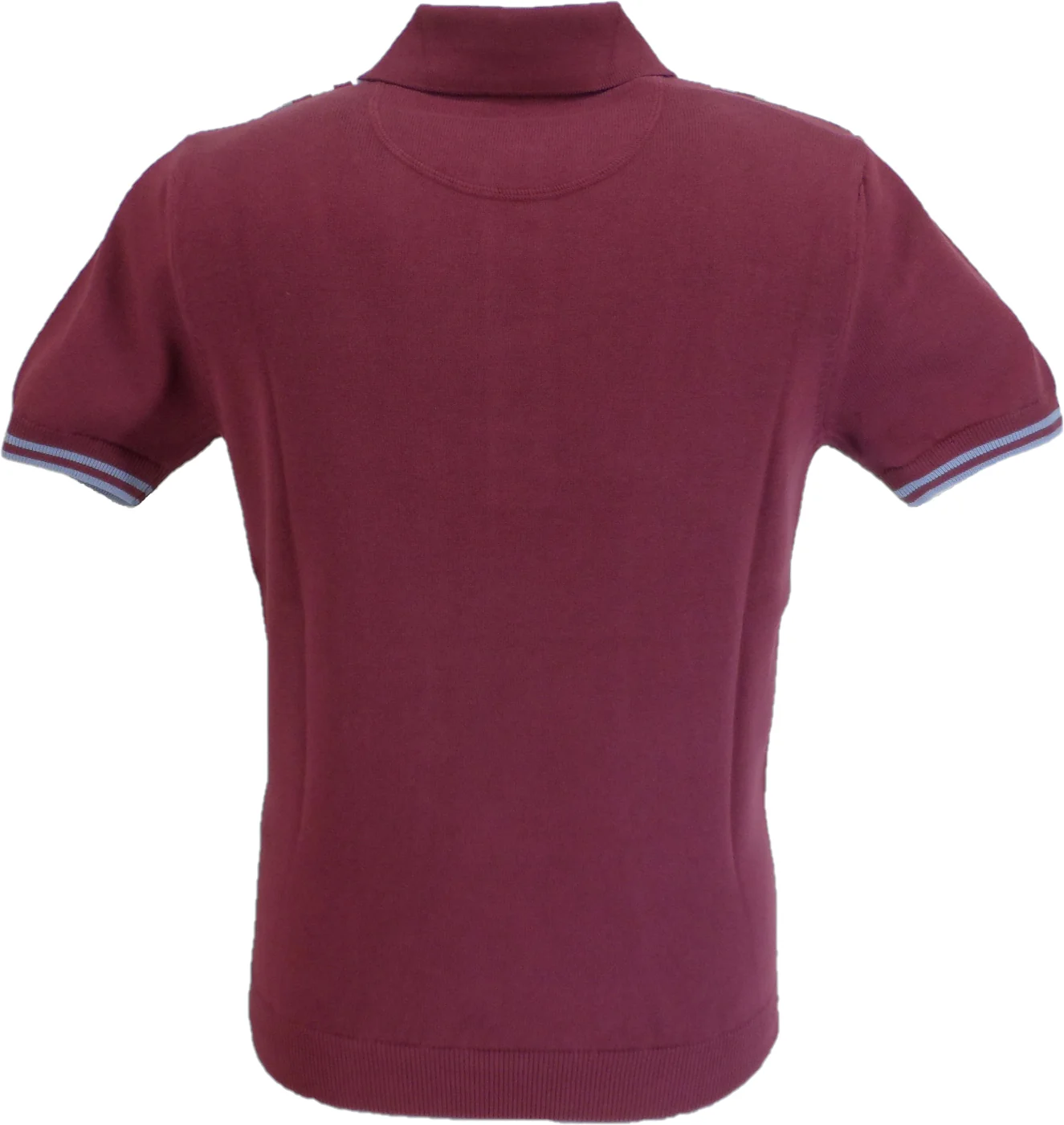 Cotton fine gauge polo, with four button placket, stripes on front panel, and Trojan metal badge to Helm
