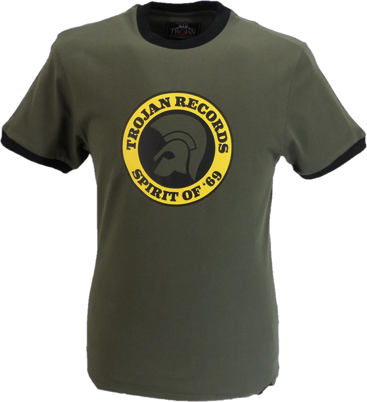 Pure Cotton jersey with a peach finish, with Spirit Of ’69 logo print design to the chest , with contrast collar and cuffs and woven Trojan label at hem.