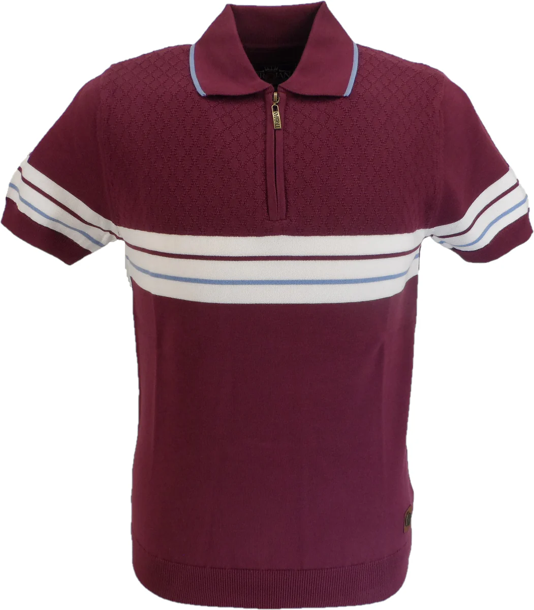 Cotton fine gauge polo, with logo brass zip placket, with textured self-diamond knit above border stripe, with tipping on the collar, with Trojan metal badge to hem. Crafted from 100% Cotton.