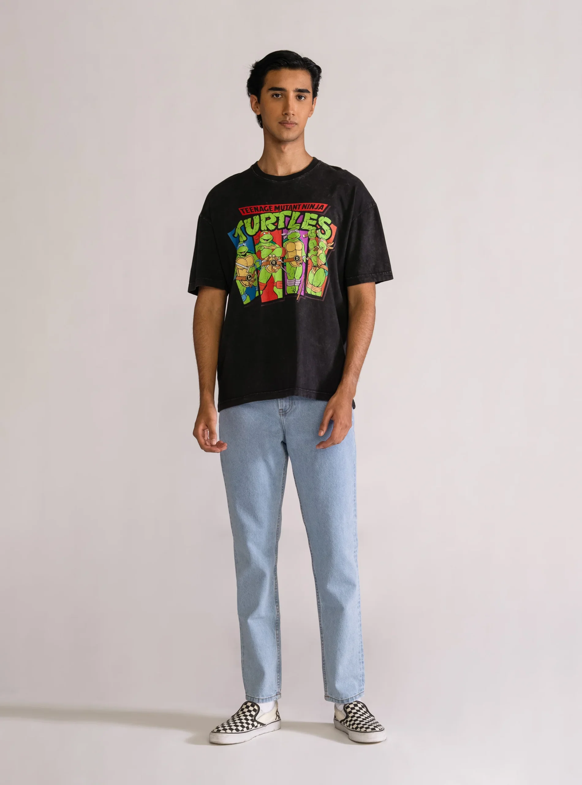Camiseta de color gris oscuro, con corte regular fit que ofrece comodidad y libertad de movimiento. Inspirada en Las Tortugas Ninja, presenta un dise帽o estampado mediante DTF (Direct to Film) y serigraf铆a, combinando durabilidad y alta calidad de impresi贸n. Fabricada en 100% algod贸n, garantiza suavidad y resistencia al uso diario.