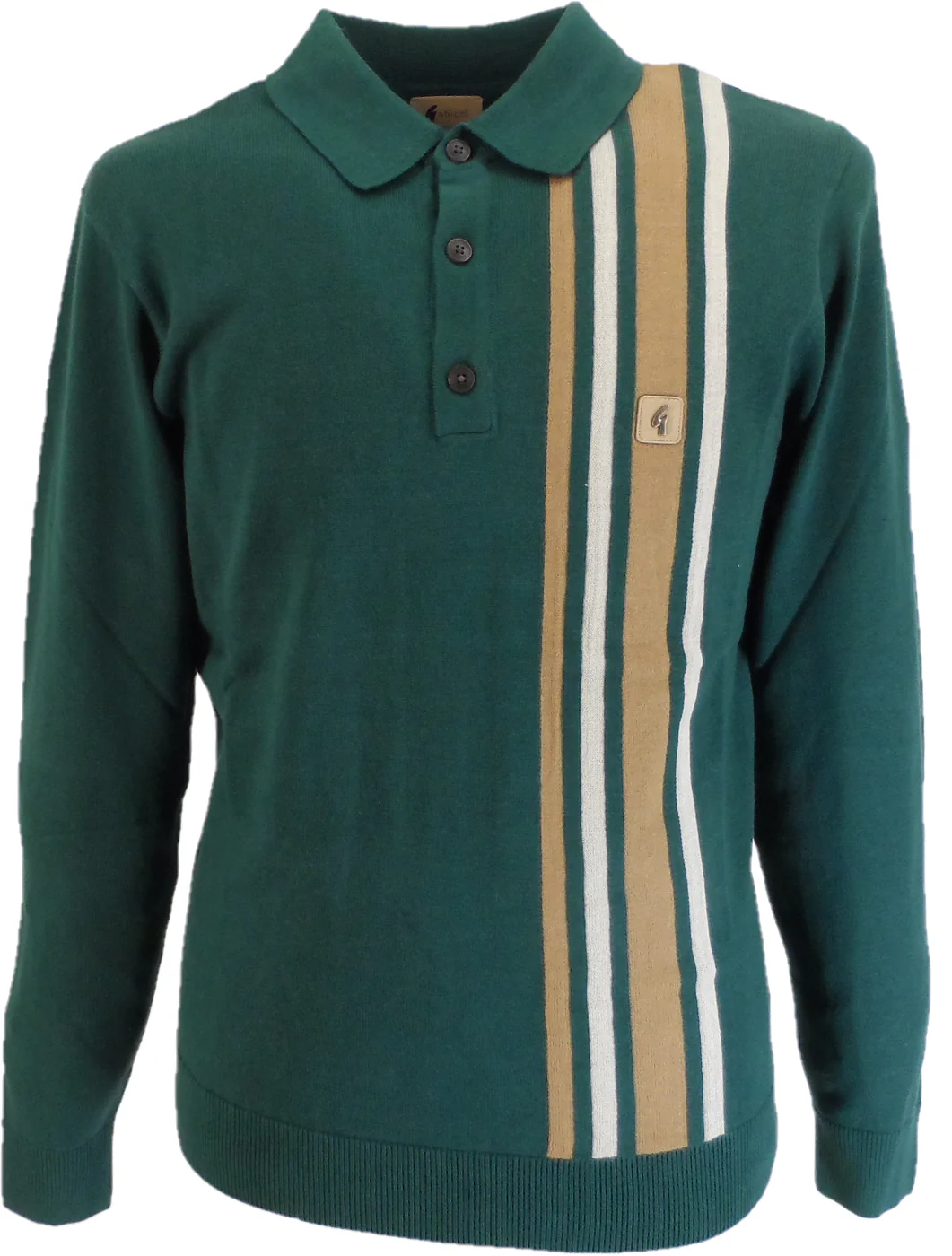 Gabicci Vintage Ivy Green Soda Stripe Knitted Polo