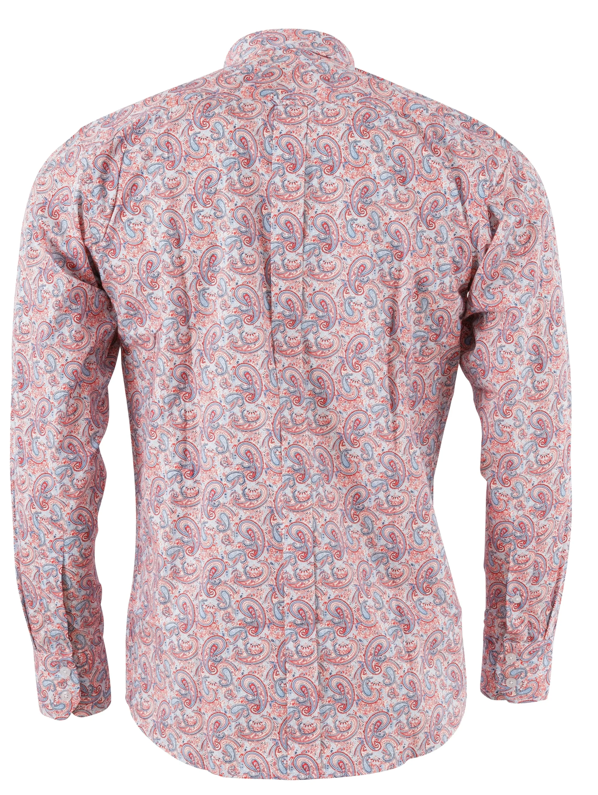 Relco Mens Red Paisley Long Sleeved Retro Mod Button Down Shirt