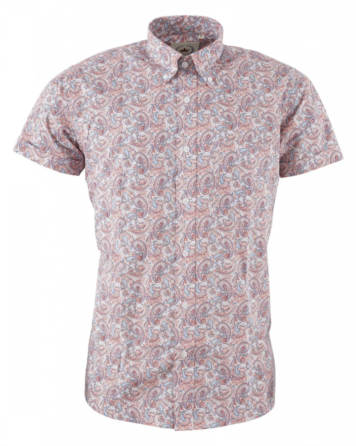 Relco Mens Red and Blue Paisley Short Sleeved Retro Mod Button Down Shirt