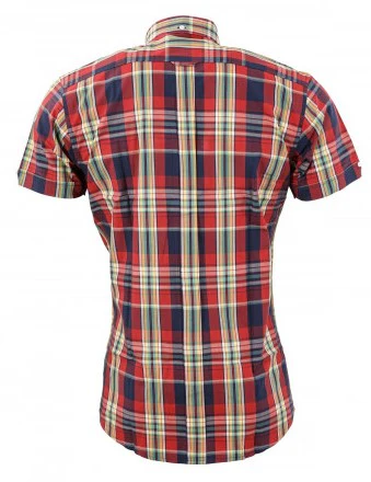 Relco Mens Red Multi Check Short Sleeved Vintage/Retro Button Down Shirts